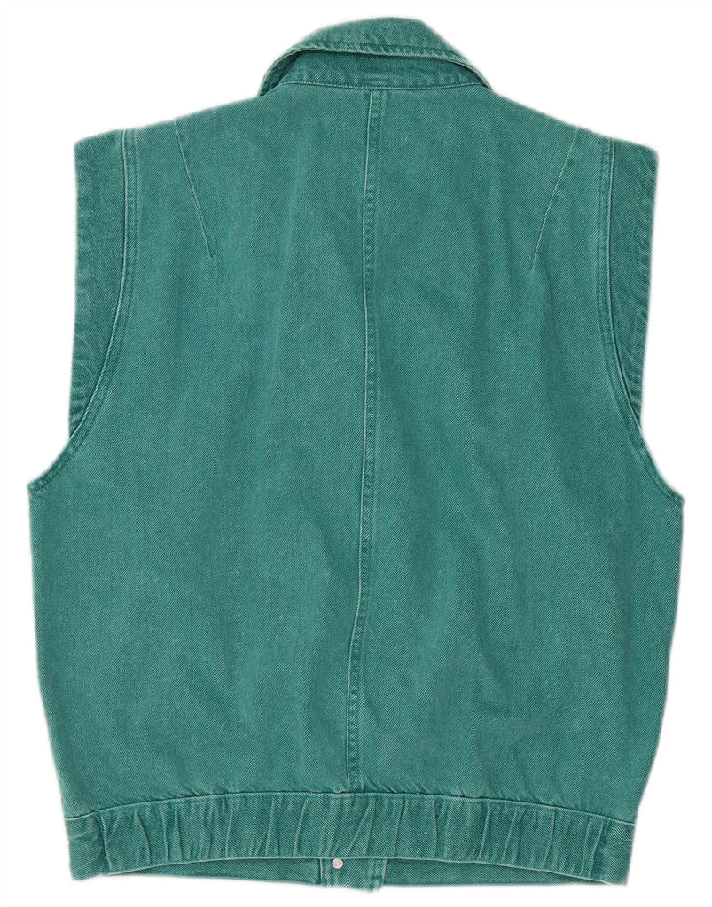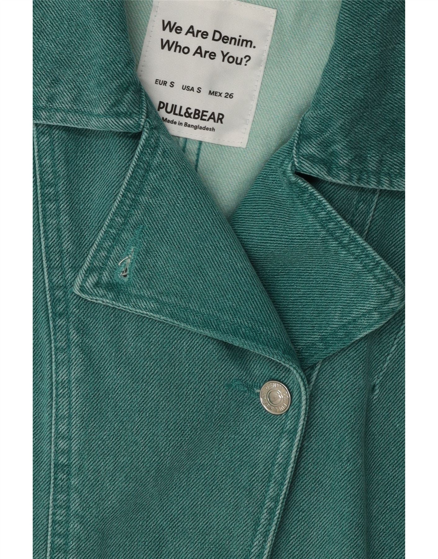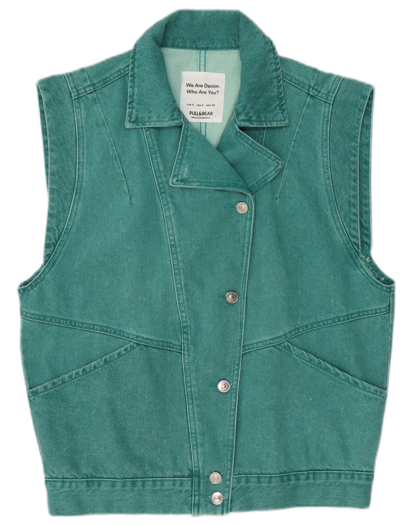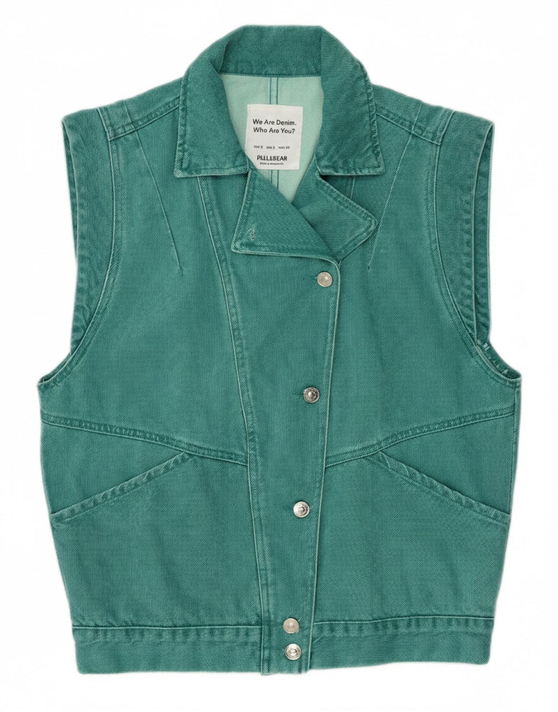PULL & BEAR Womens Oversized Denim Gilet UK 10 Small Green Cotton