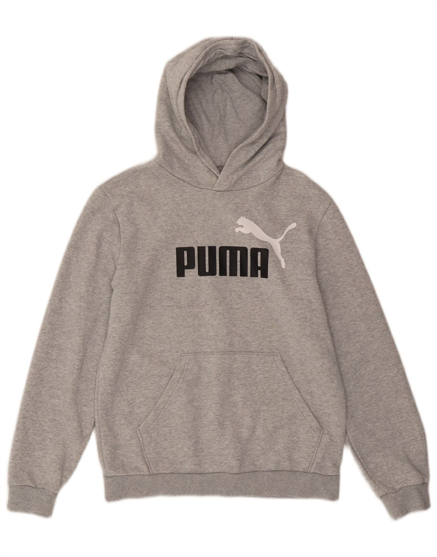 PUMA Boys Graphic Hoodie Jumper 13-14 Years Grey Cotton
