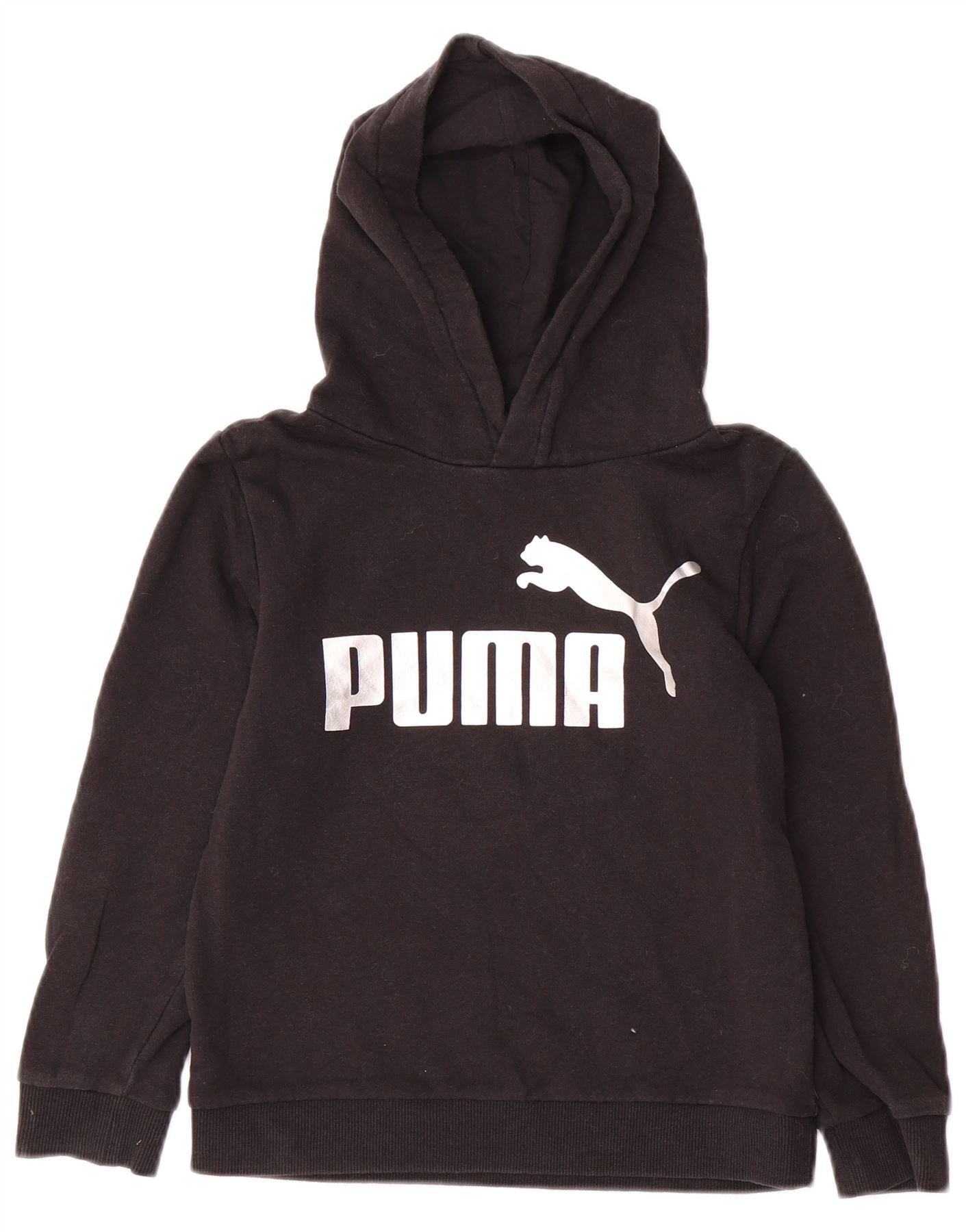 PUMA Girls Graphic Hoodie Jumper 7-8 ετών Μαύρο βαμβακερό