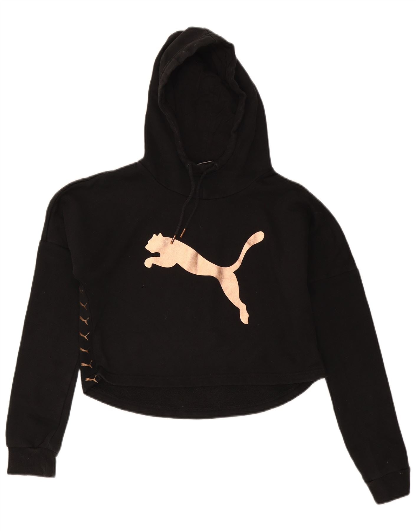 Γυναικείο PUMA Oversized Graphic Crop Hoodie Jumper UK 12 Medium Black