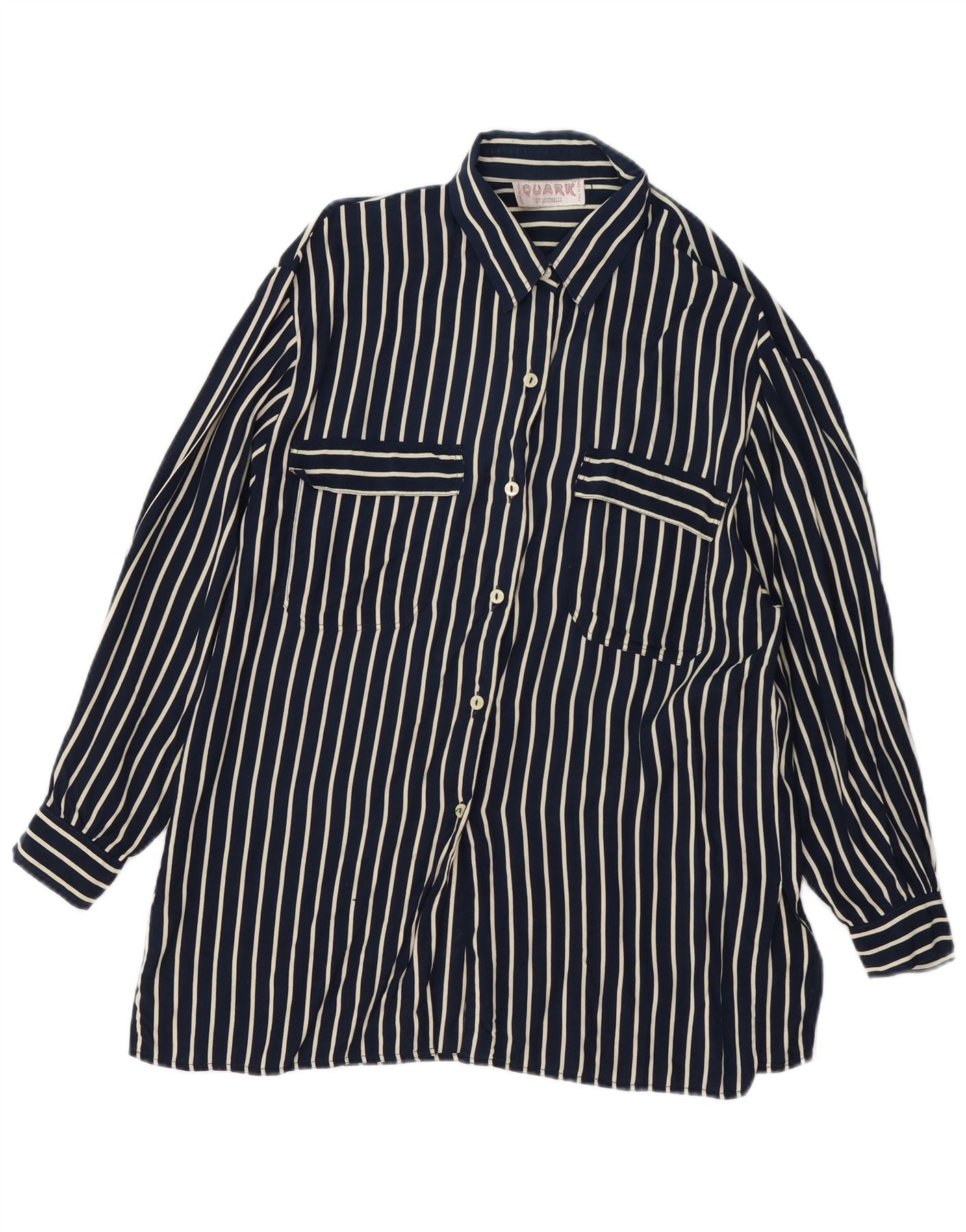 QUARK Γυναικείο πουκάμισο 3/4 μανίκι UK 16 μεγάλο μπλε ναυτικό ριγέ βισκόζη