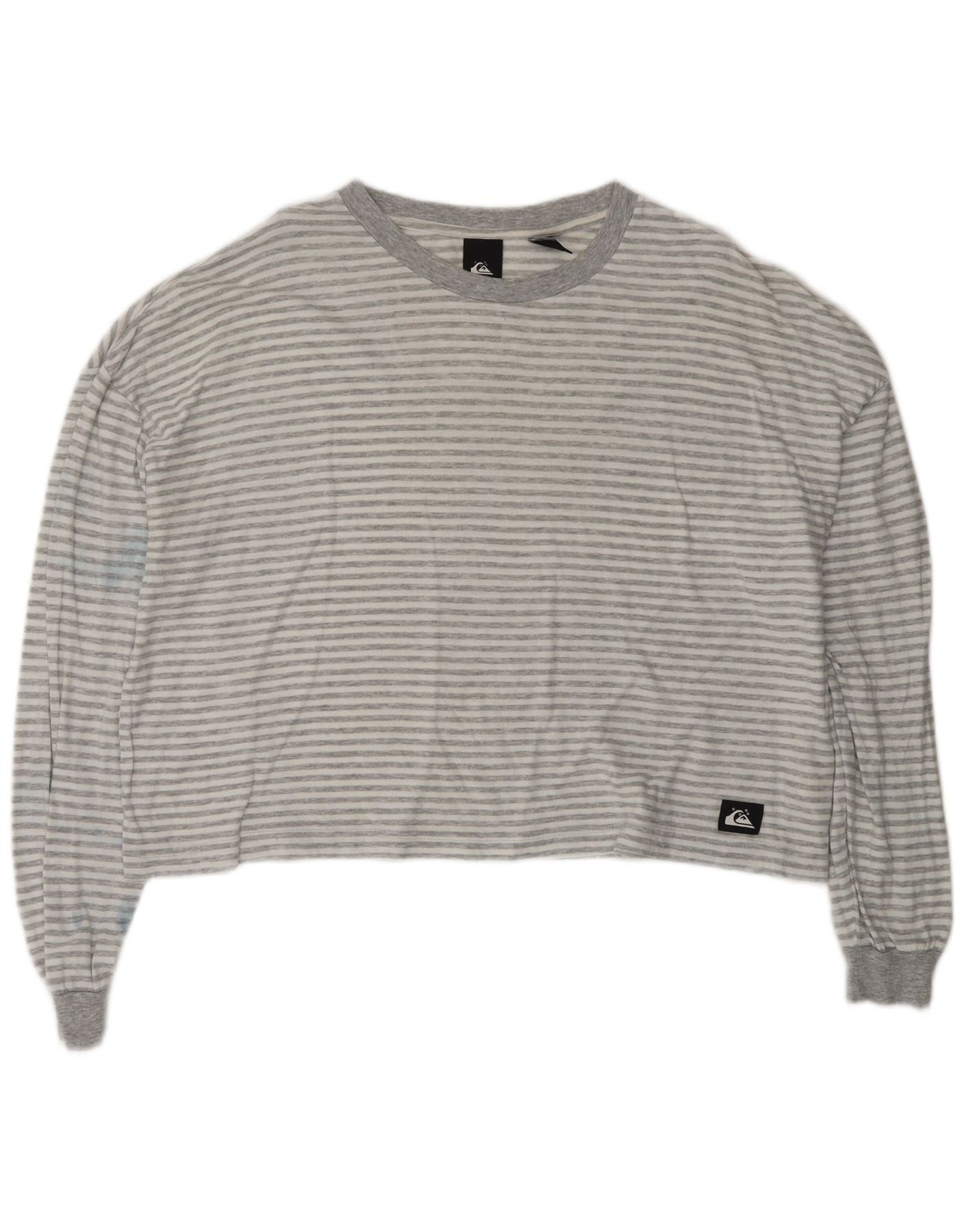 QUIKSILVER Γυναικείο υπερμεγέθη Crop μακρυμάνικο UK 14 μεσαίο γκρι ριγέ