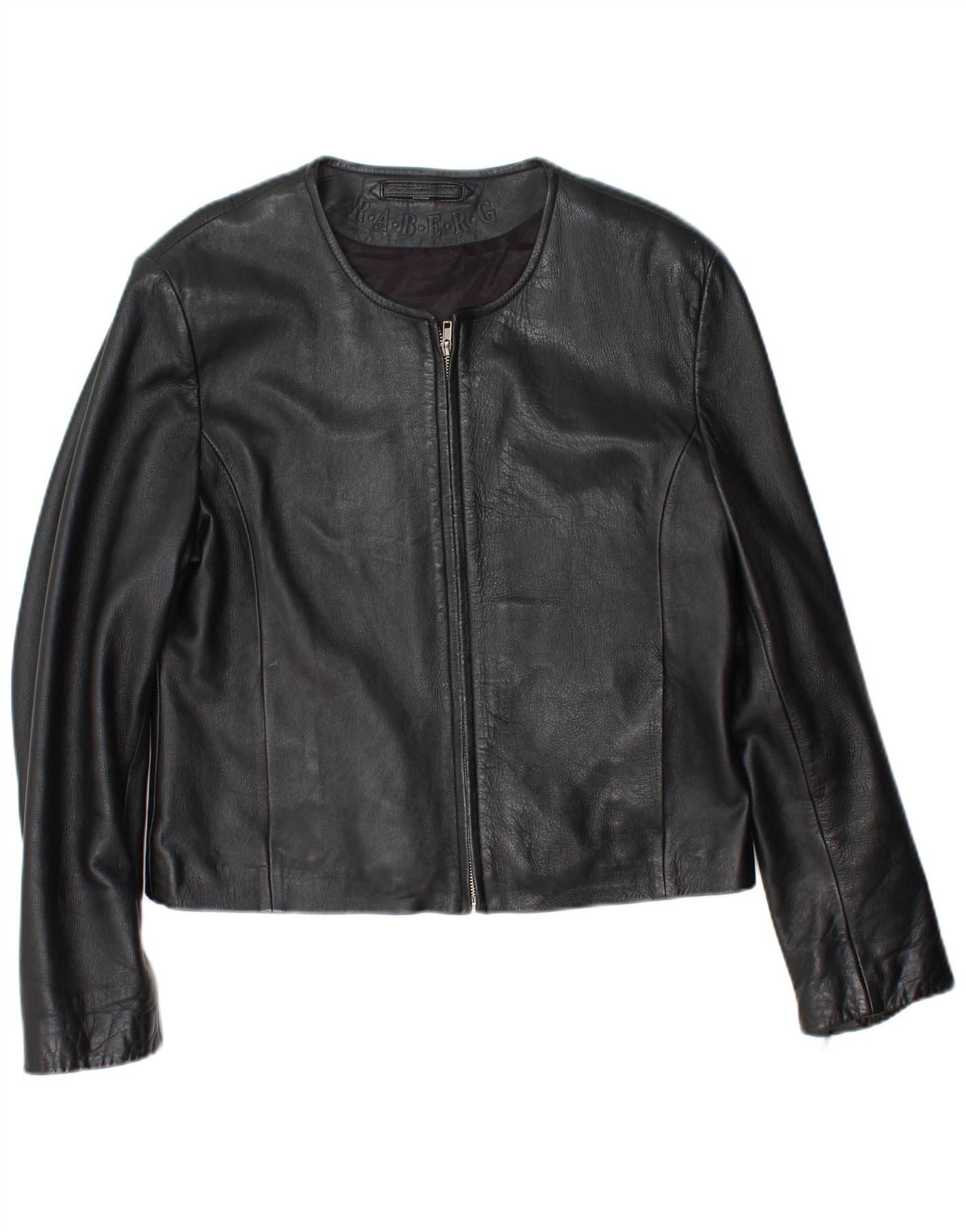 RABERG Γυναικείο Crop Δερμάτινο Μπουφάν EU 42 Μεγάλο Δερμάτινο Μαύρο