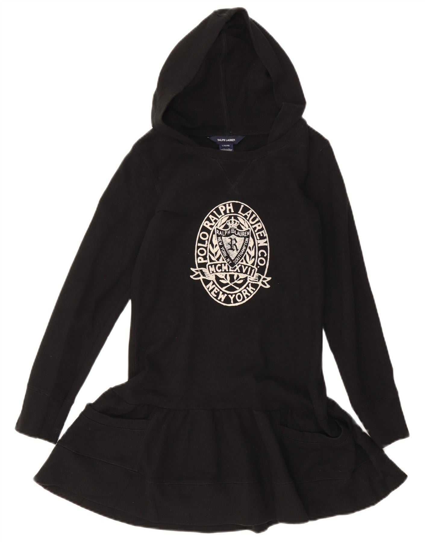 Ralph Lauren Girls Graphic Drop Waist φόρεμα 12-13 ετών Μεγάλο μαύρο βαμβακερό