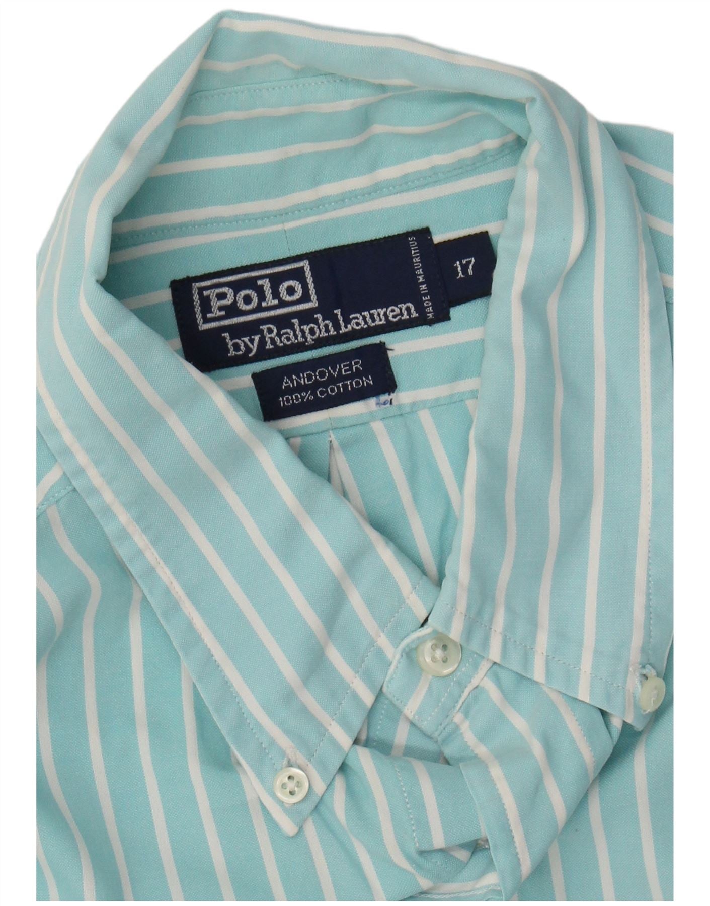 RALPH LAUREN Ανδρικό πουκάμισο Andover μέγεθος 17 XL Τυρκουάζ ριγέ βαμβακερό