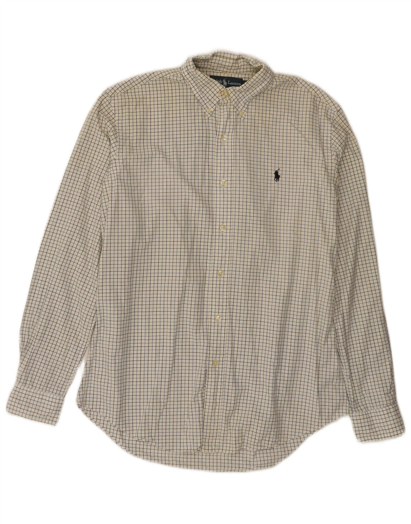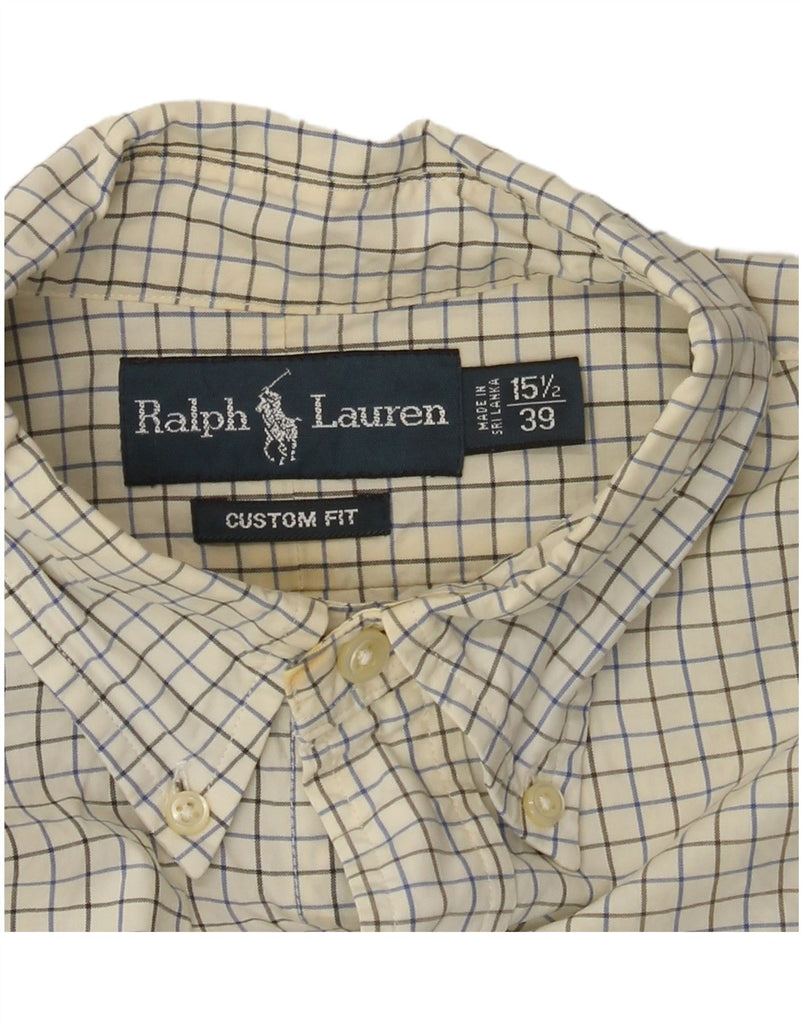 RALPH LAUREN Mens Custom Fit Shirt Size 15 1/2 39 Medium Off White Check