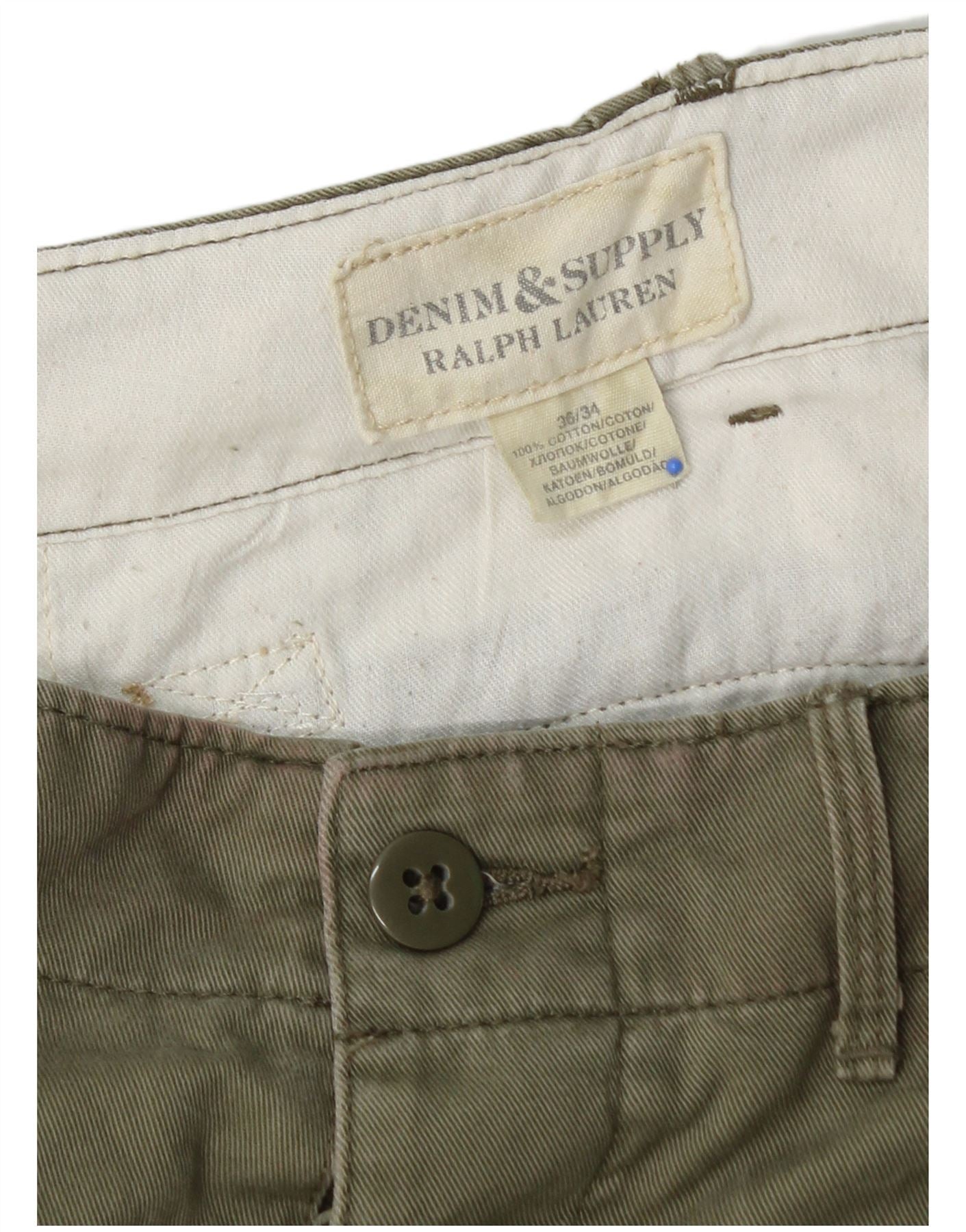 RALPH LAUREN Mens Straight Chino Trousers W36 L34 Khaki Cotton