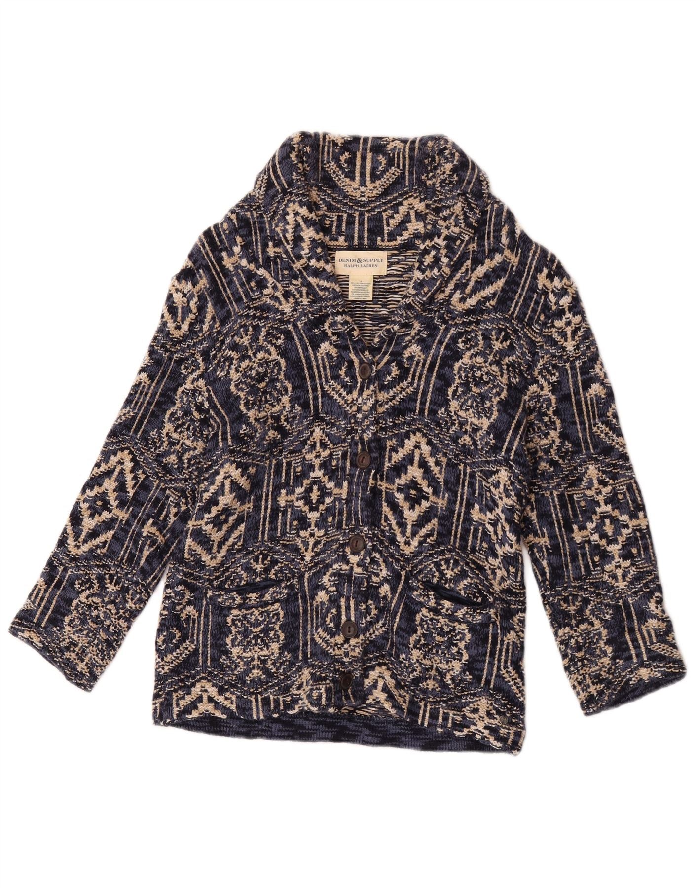 Γυναικείο πουλόβερ ζακέτα με αφηρημένο σχέδιο Ralph Lauren UK 8 Small Navy Blue