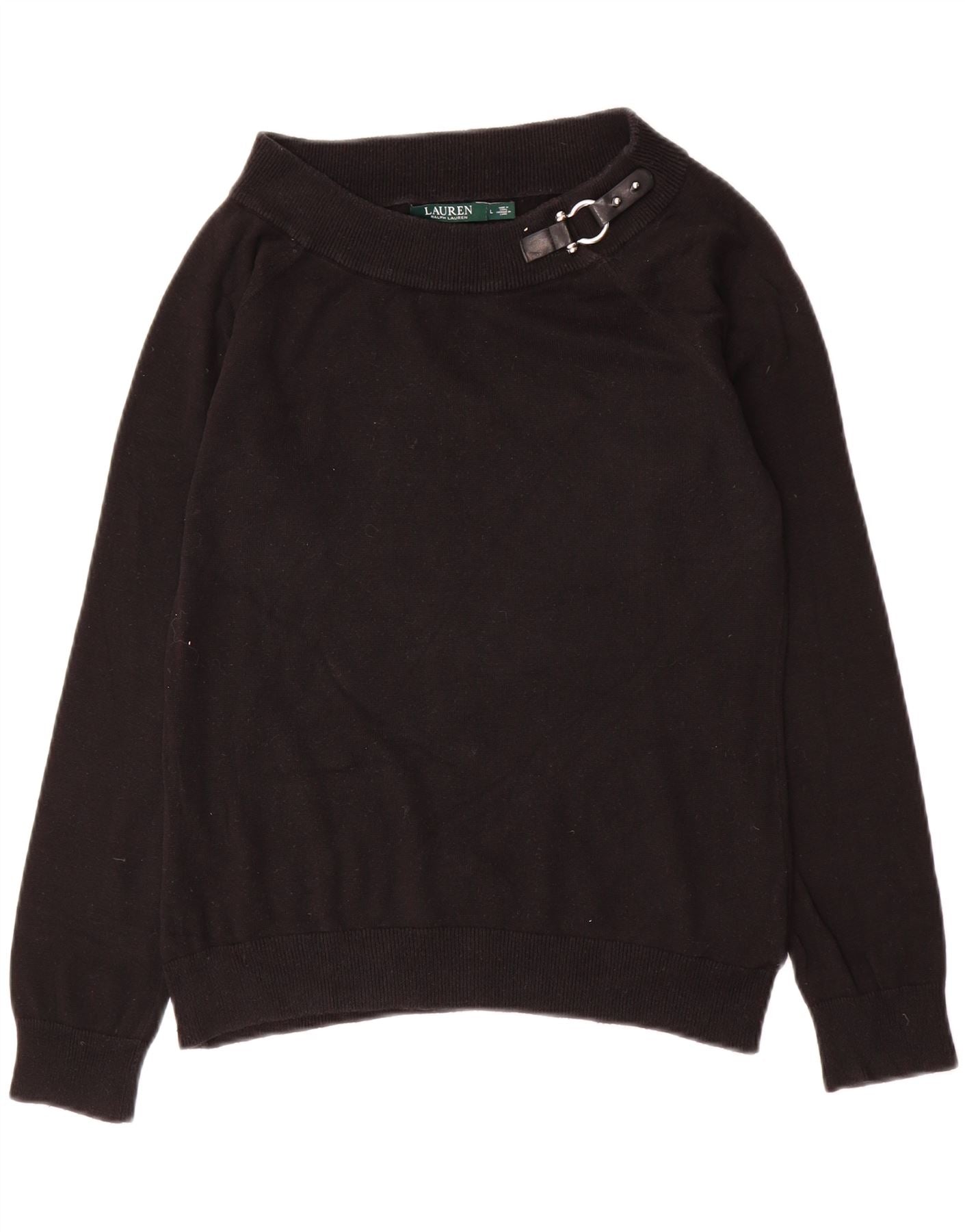 RALPH LAUREN Womens Boat Neck Jumper Sweater UK 16 Large Black Cotton
