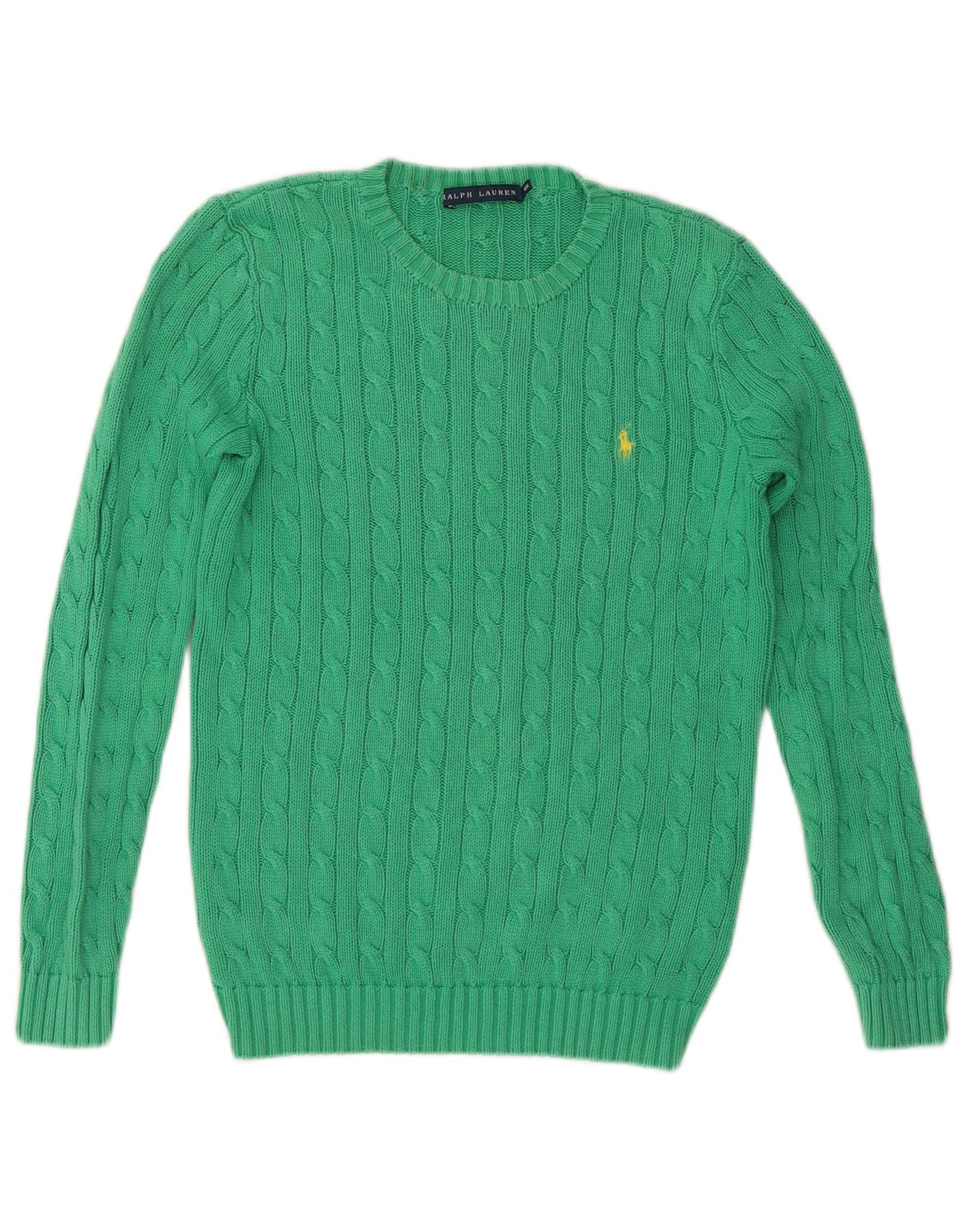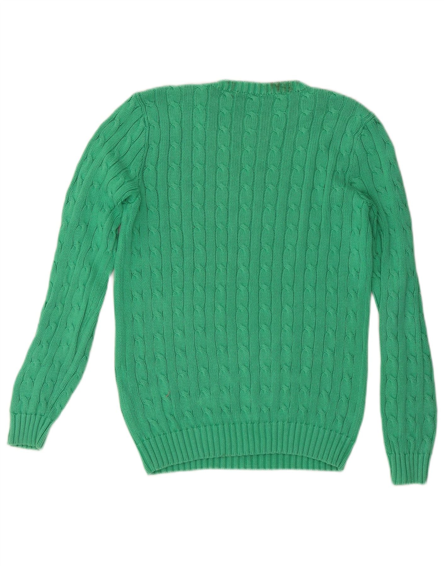 RALPH LAUREN Womens Crew Neck Jumper Sweater UK 14 Medium Green Cotton