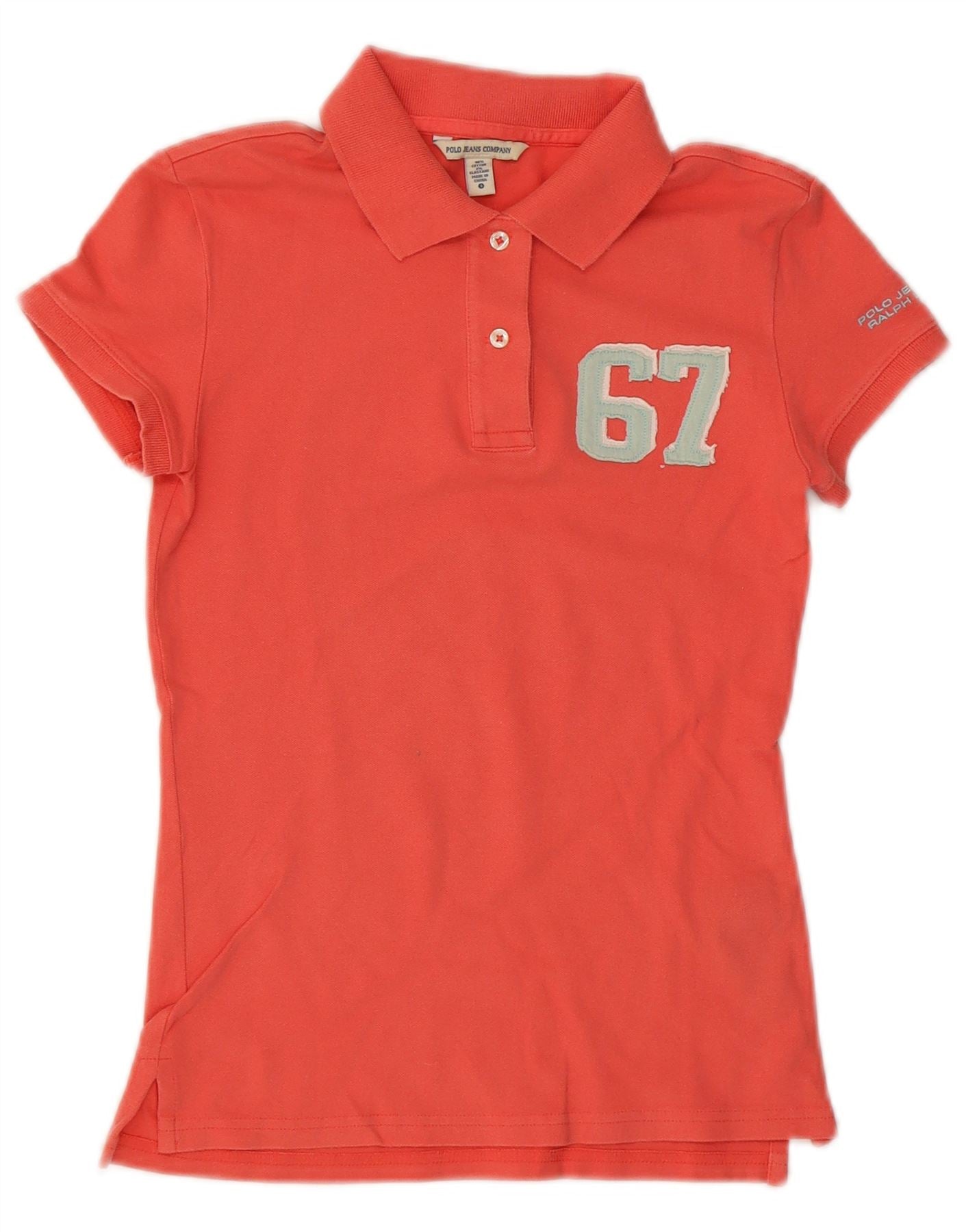 RALPH LAUREN Womens Graphic Polo Shirt UK 8 Small Orange Cotton