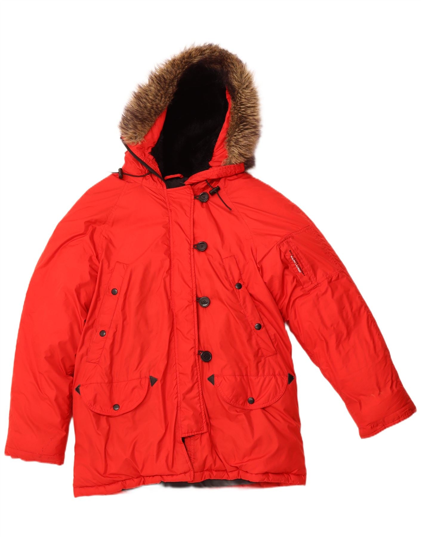 RALPH LAUREN Γυναικείο μπουφάν Parka με κουκούλα UK 14 Medium Red Winter