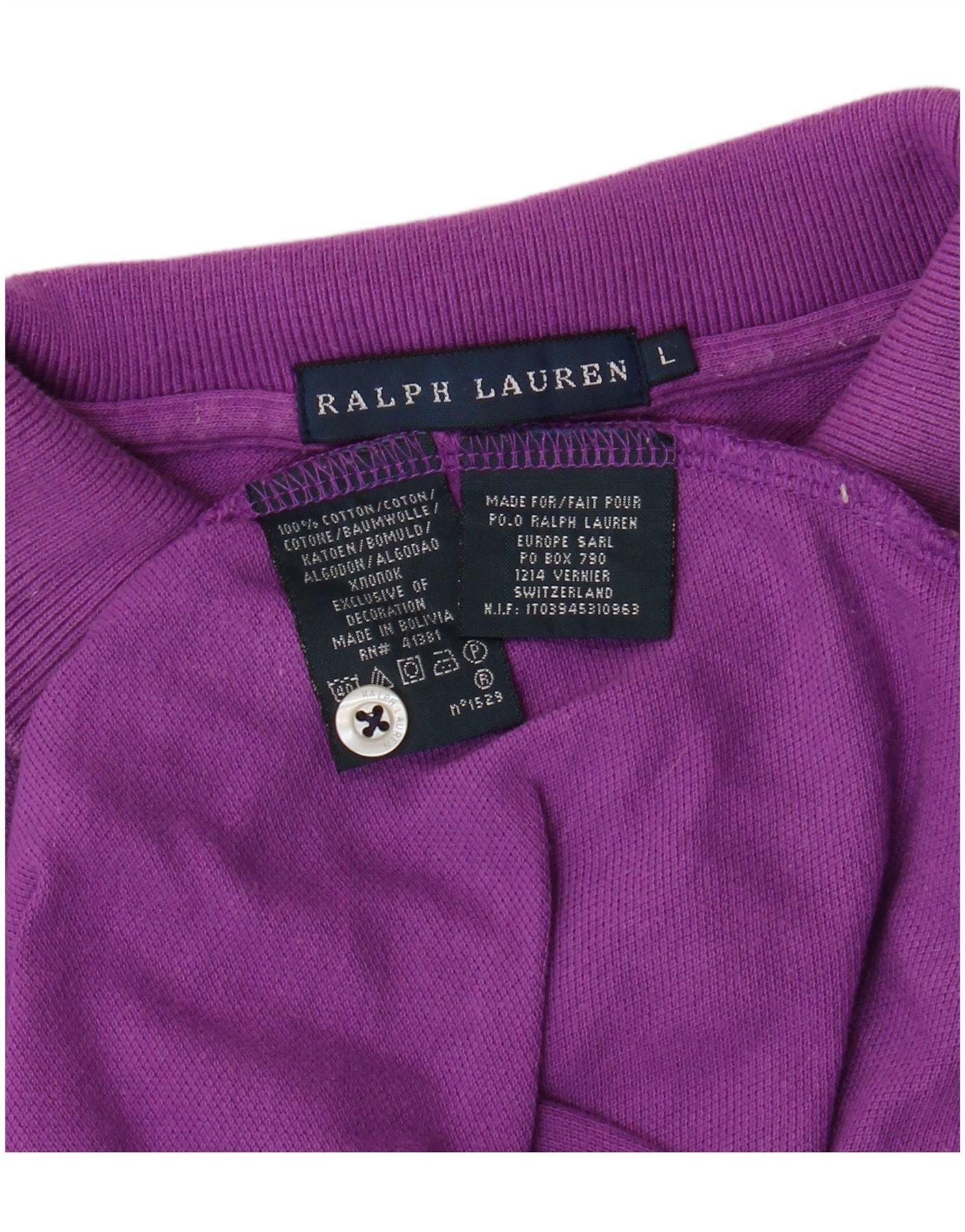 RALPH LAUREN Γυναικείο μακρυμάνικο μπλουζάκι πόλο UK 16 μεγάλο μωβ βαμβακερό