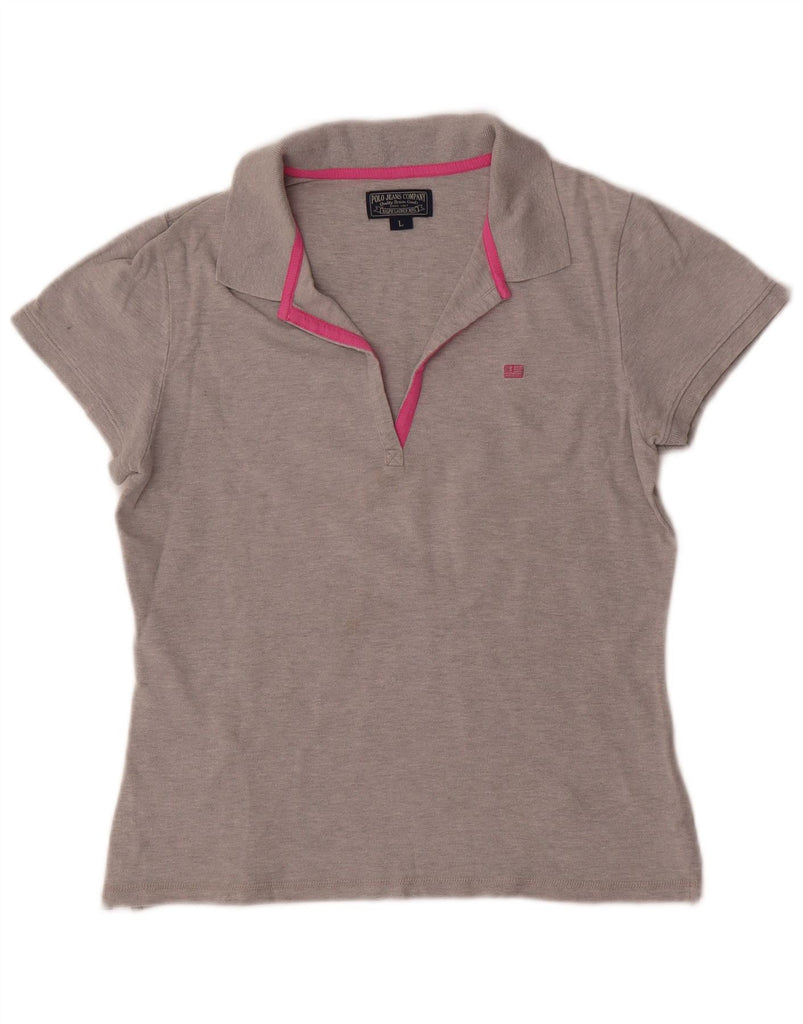 RALPH LAUREN Womens Polo Shirt UK 14 Large Grey Flecked Cotton