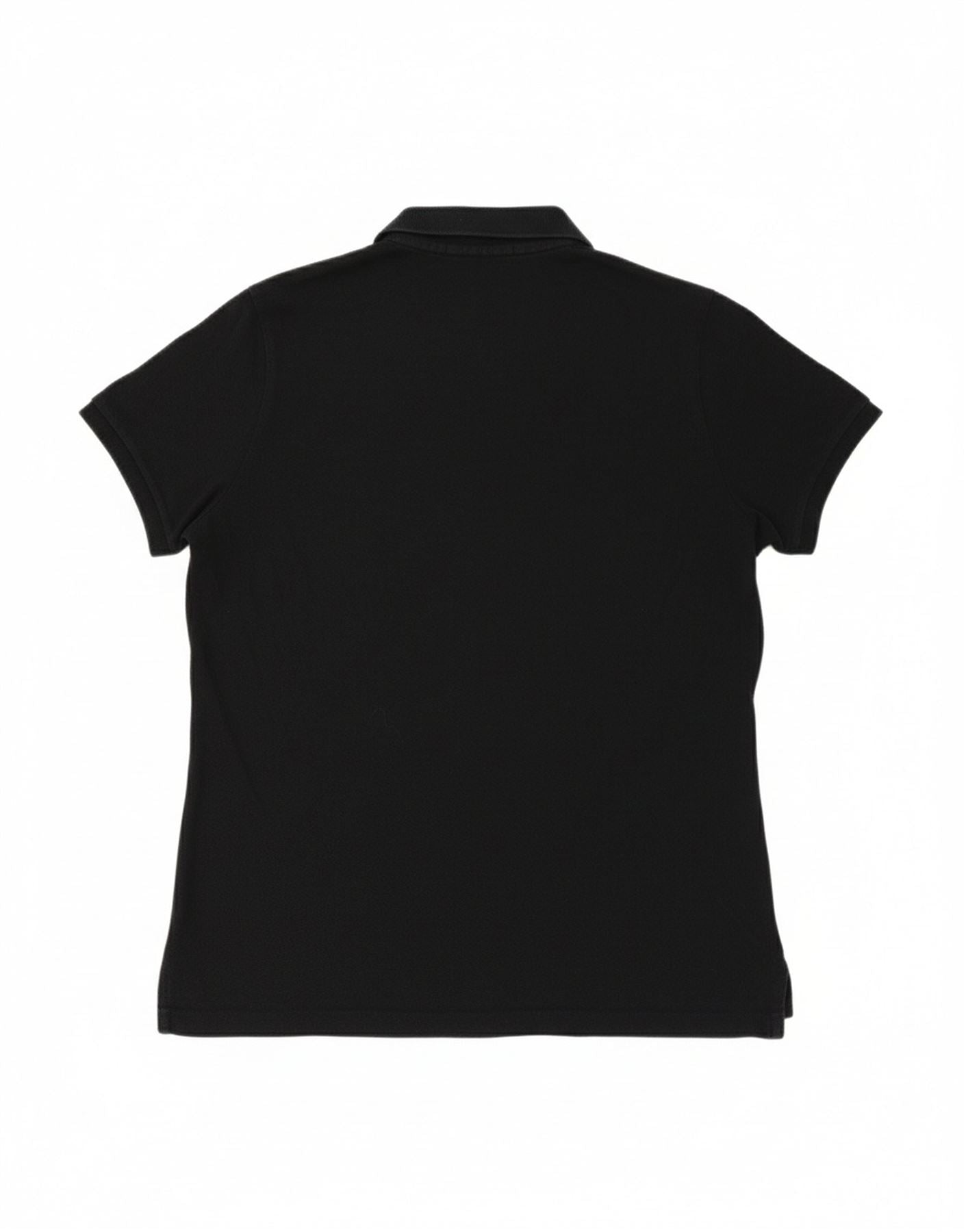 - AI Description: This Ralph Lauren womens shirt is crafted from a black knit fabric. It offers a comfortable regular fit with a touch of stretch. The collared neckline and short sleeves provide a smart yet casual silhouette. It features a button closure down the front. Subtle embroidered accenting adds a refined detail. Practical pockets enhance its functional design. This piece is perfect for versatile styling.