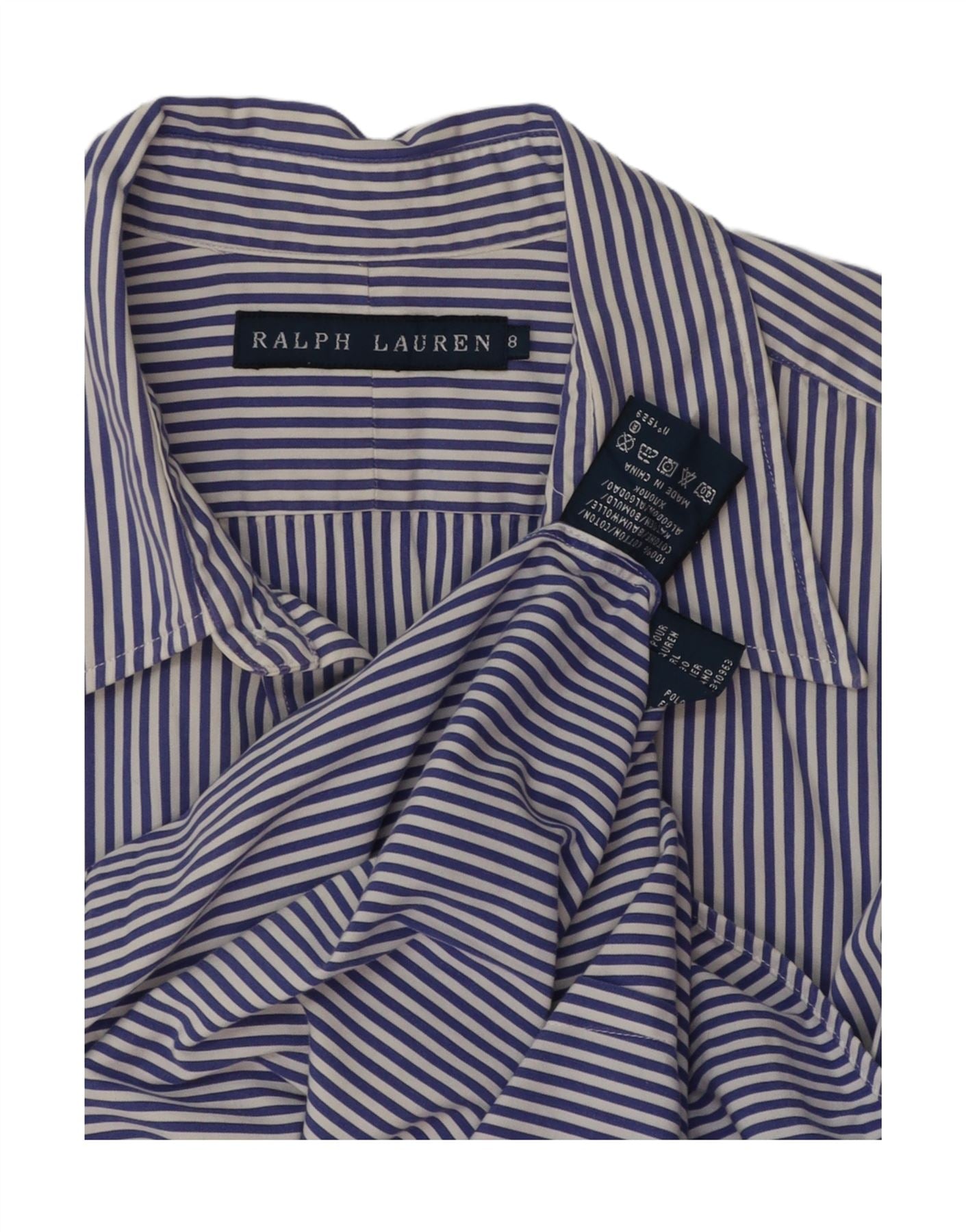 RALPH LAUREN Womens Shirt US 8 Medium Blue Striped Cotton