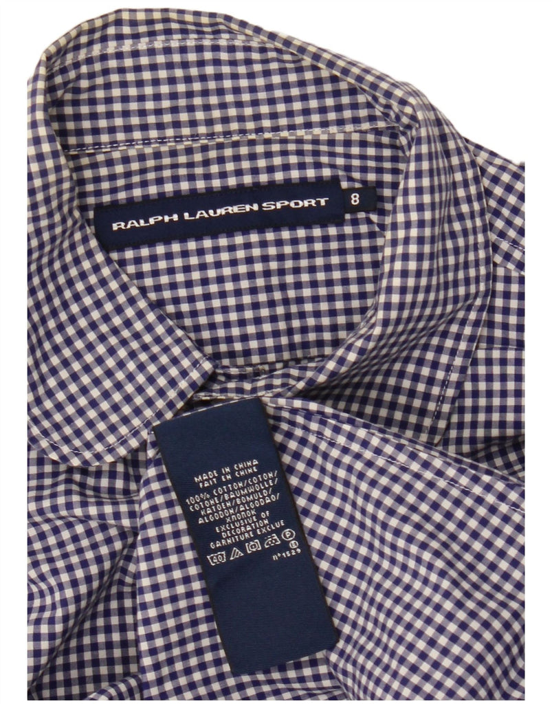 RALPH LAUREN Womens Short Sleeve Shirt US 8 Medium Blue Gingham Cotton