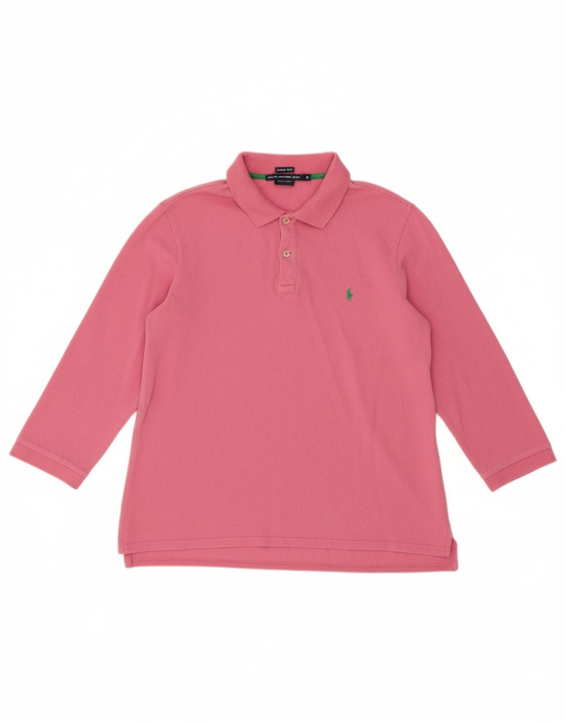 RALPH LAUREN Womens Slim Fit 3/4 Sleeve Polo Shirt UK 14 Medium Pink