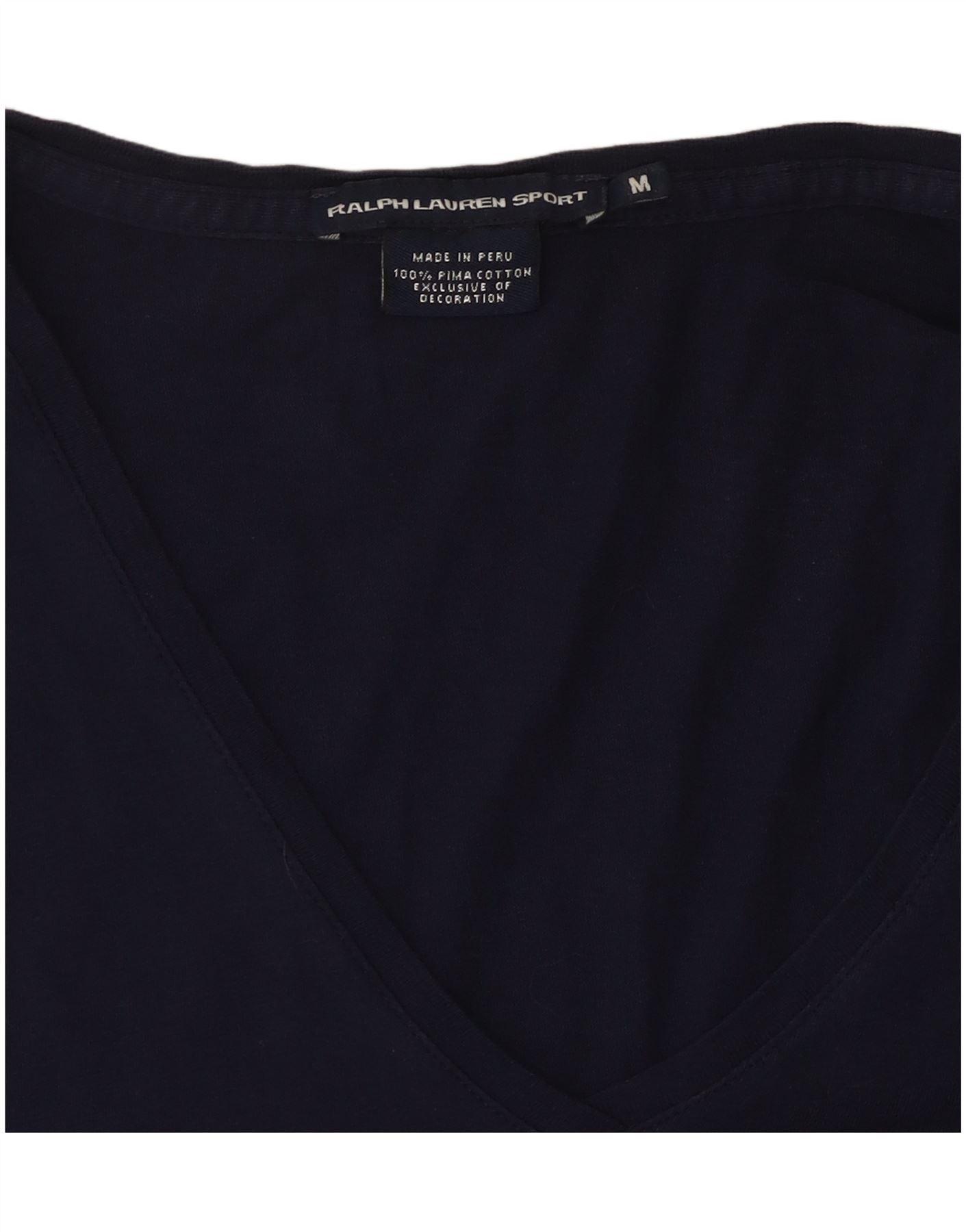 RALPH LAUREN Γυναικείο T-Shirt τοπ UK 12 μεσαίο μπλε βαμβακερό