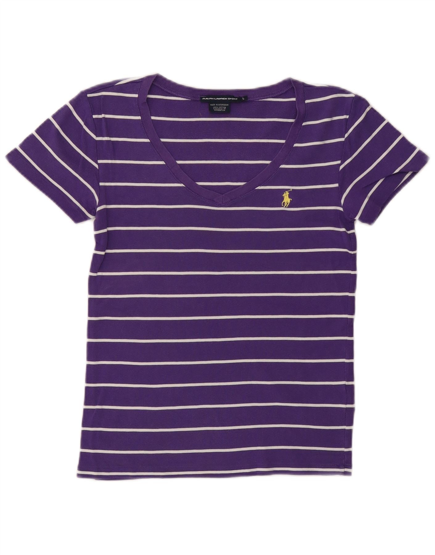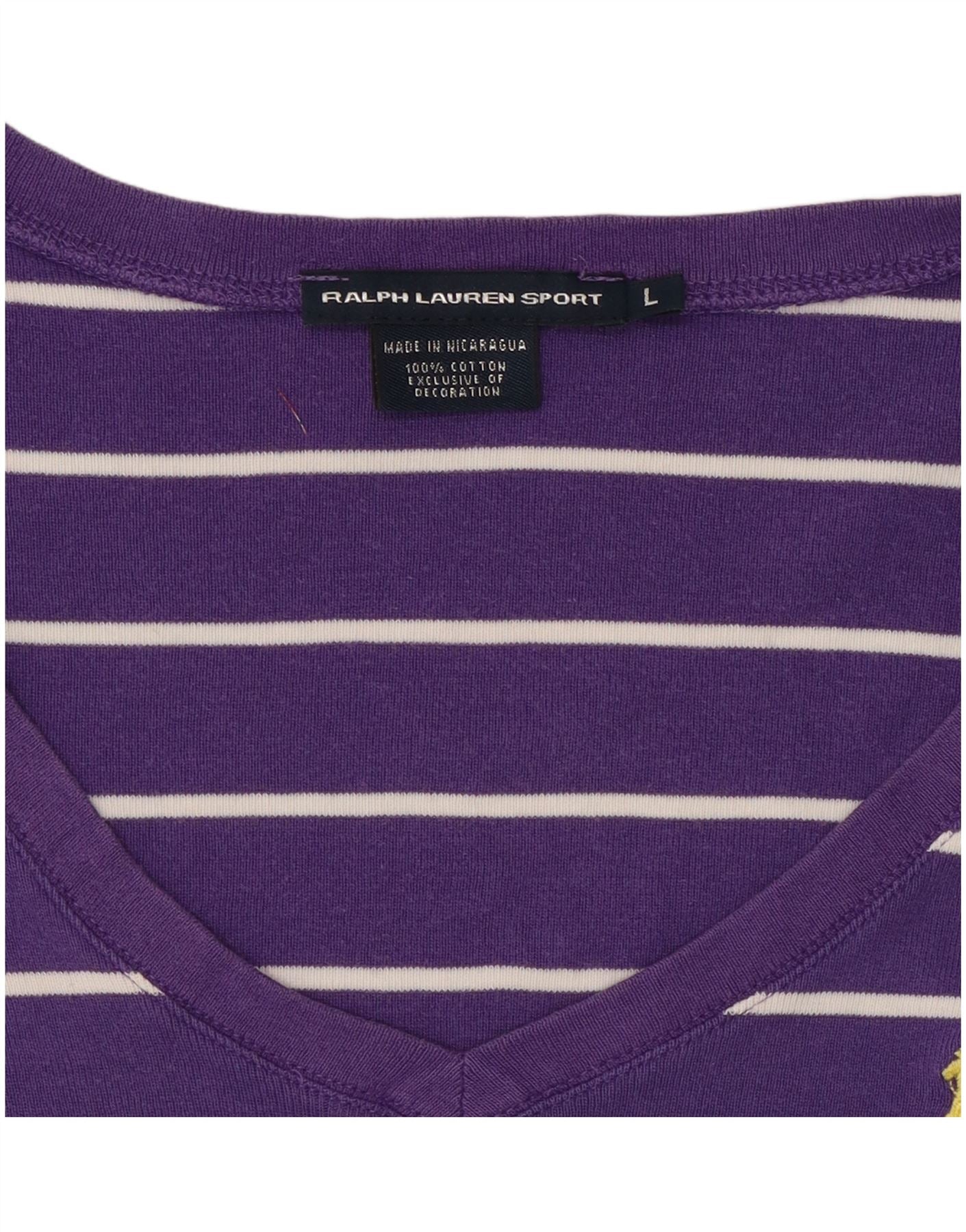 RALPH LAUREN Γυναικείο T-Shirt τοπ UK 14 μεγάλο μωβ ριγέ βαμβακερό