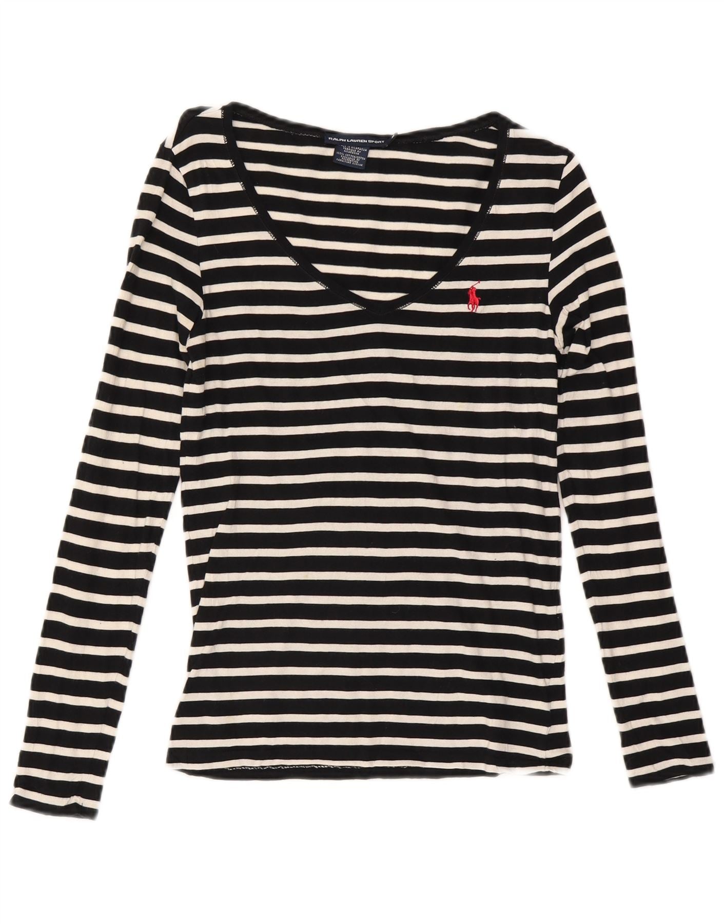Γυναικείο μπλουζάκι Ralph Lauren μακρυμάνικο UK 12 μέτριο μαύρο βαμβακερό ριγέ
