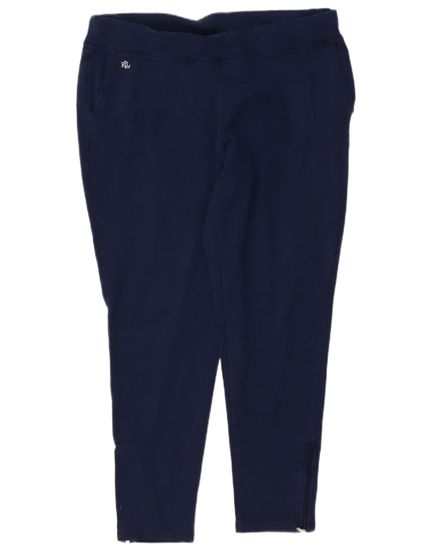 RALPH LAUREN Womens Tracksuit Trousers UK 18 XL Navy Blue Cotton