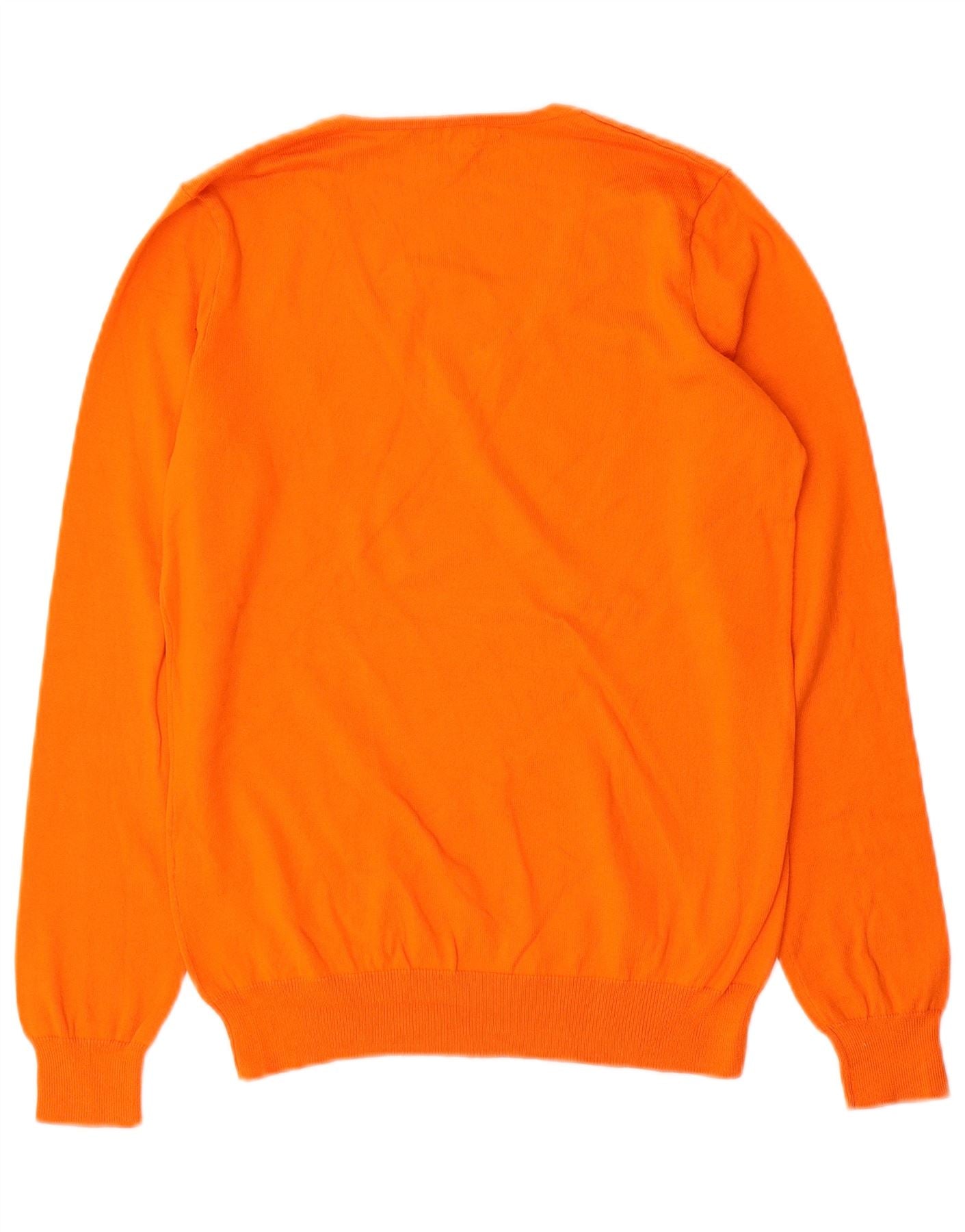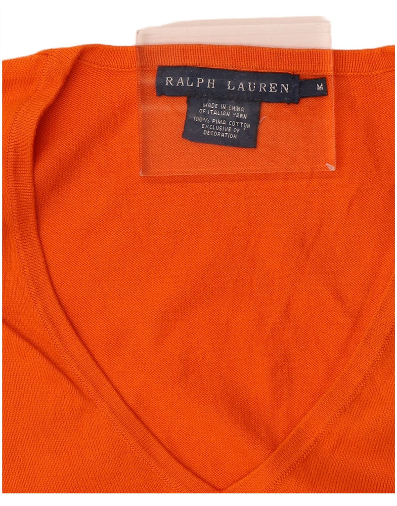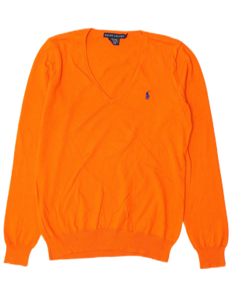 RALPH LAUREN Womens V-Neck Jumper Sweater UK 12 Medium Orange Cotton