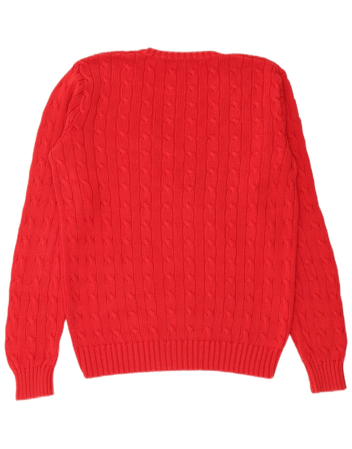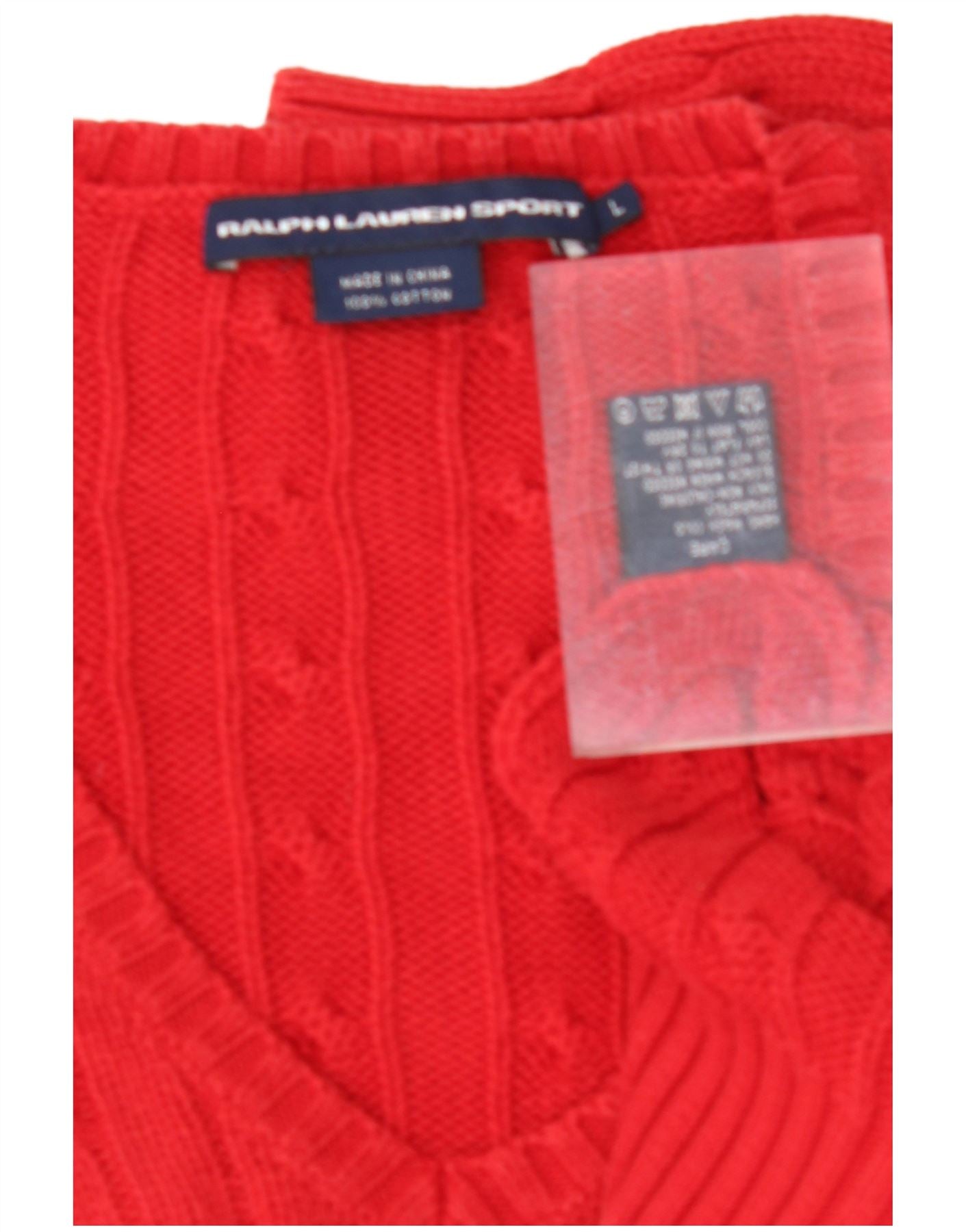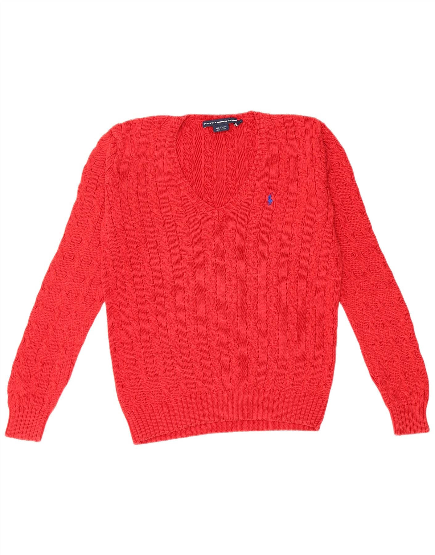 RALPH LAUREN Womens V-Neck Jumper Sweater UK 14 Large Red Cotton