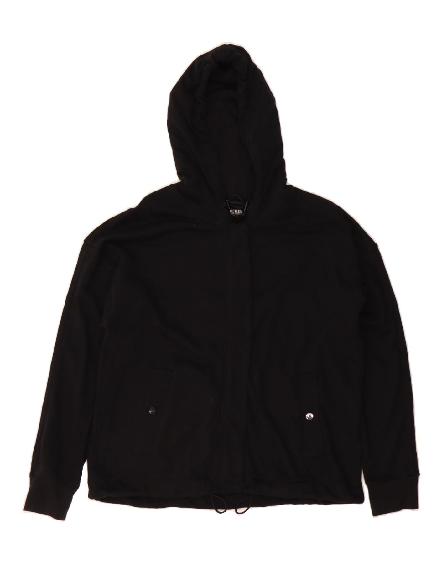 RALPH LAUREN Womens Zip Hoodie Sweater UK 16 Large Black Cotton