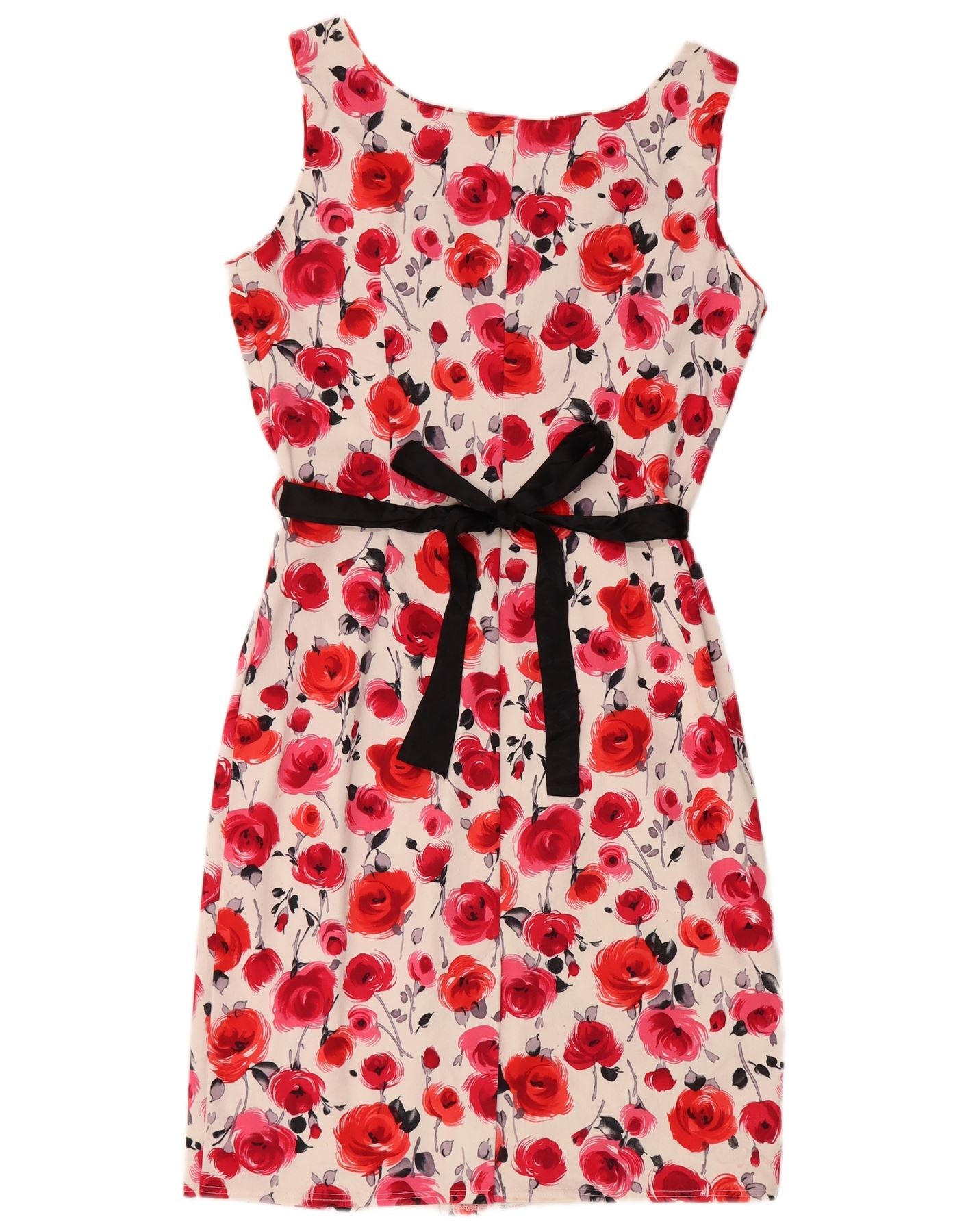 RED HERRING Womens Sleeveless Sheath Dress UK 16 Large Red Floral Cotton