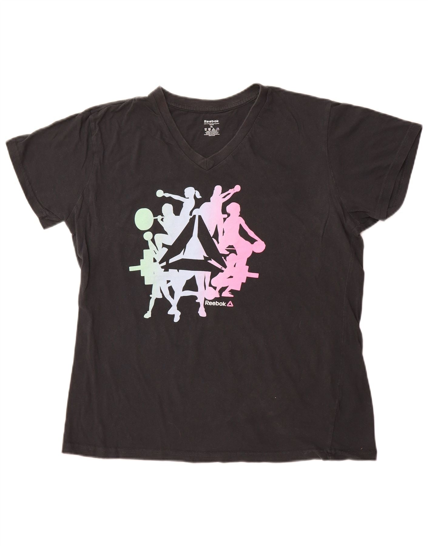 Γυναικείο γραφικό T-Shirt REEBOK Top UK 18 XL Μαύρο βαμβακερό