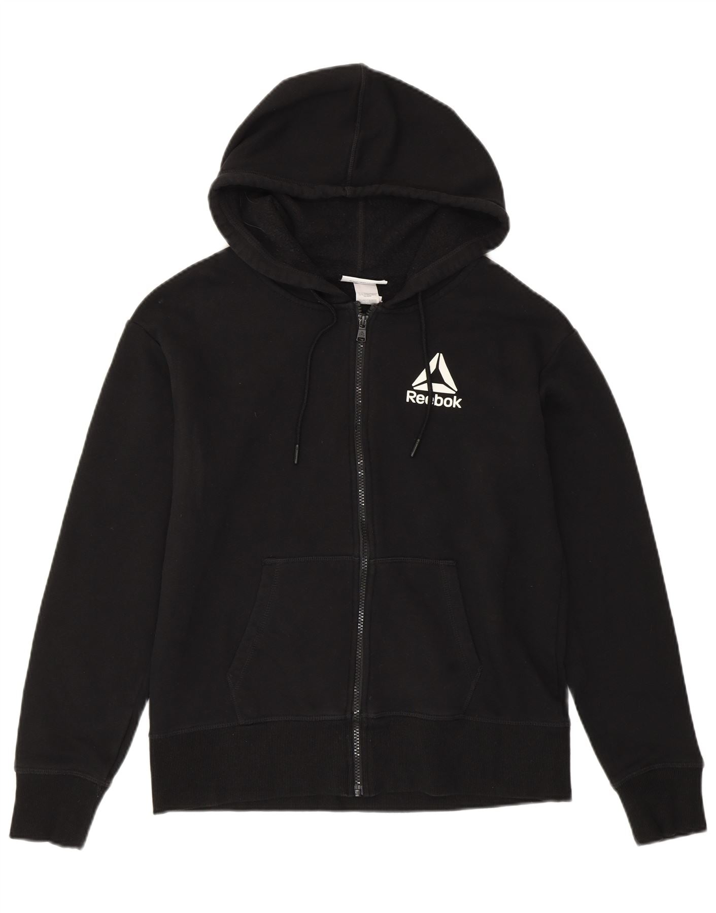 Γυναικείο πουλόβερ με κουκούλα REEBOK UK 14 μεσαίο μαύρο βαμβακερό