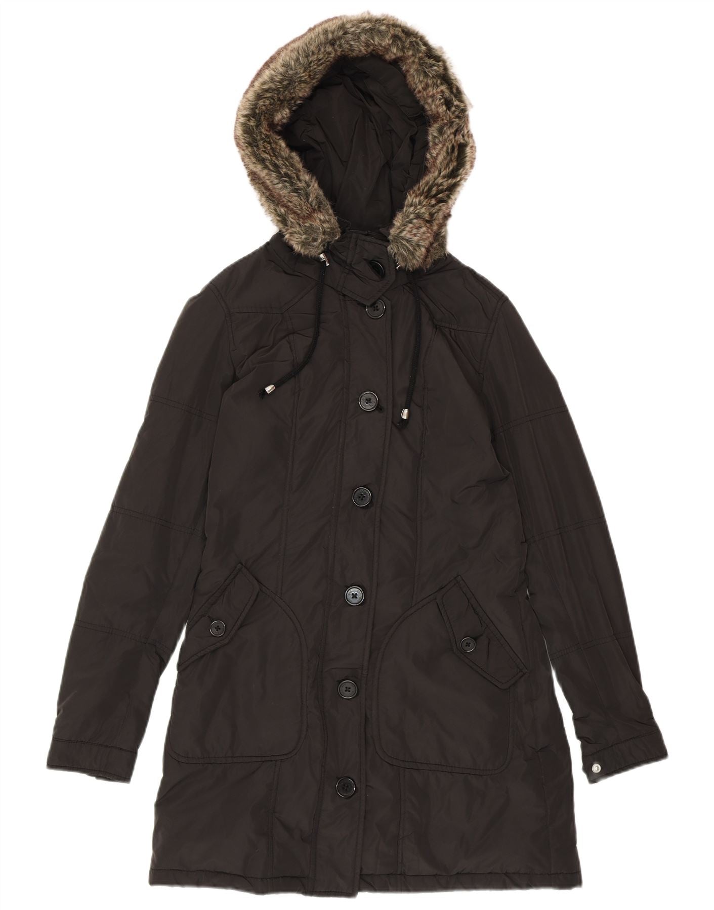 REFRIGUE Γυναικείο μπουφάν Parka με κουκούλα UK 10 Small Black Polyester