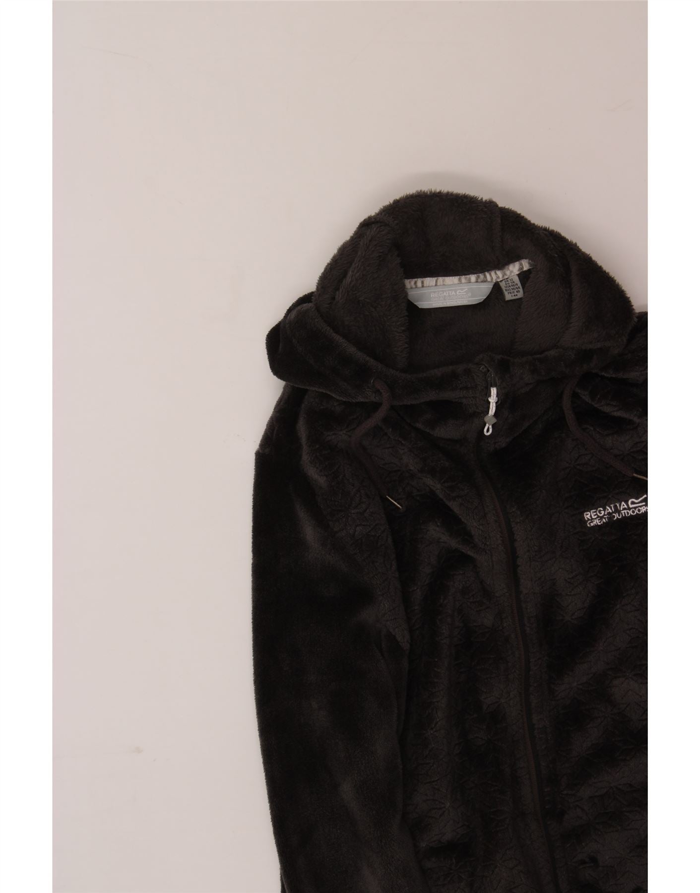 REGATTA Womens Hooded Fleece Jacket UK 12 Medium Grey Floral Polyester