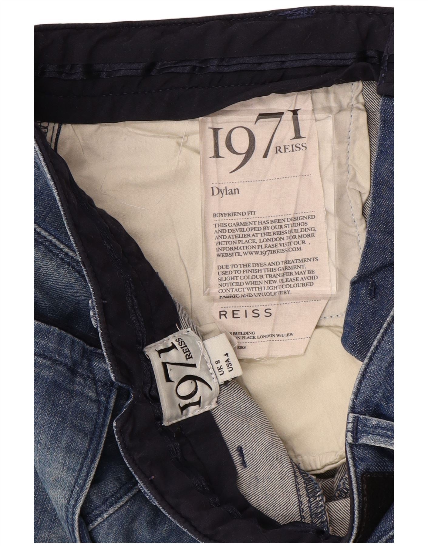 REISS Womens Boyfriend Fit Straight Jeans UK 8 Small W30 L29 Blue Cotton