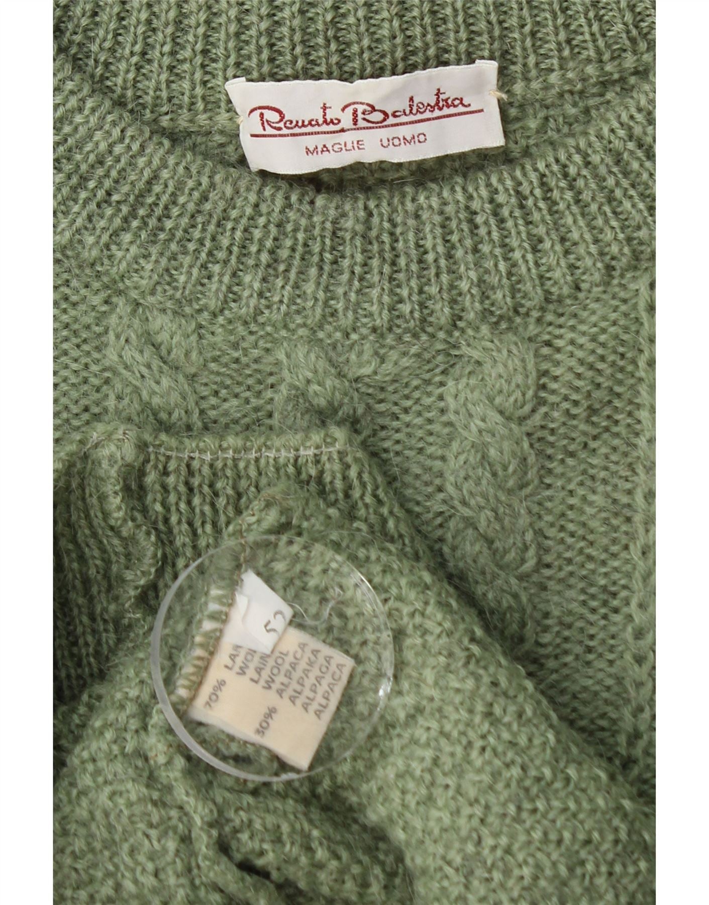 - AI Description: This Renato Balestra mens jumper is crafted from a luxurious wool and alpaca blend knit. Its rich green hue complements the distinctive geometric pattern. The classic crew neck and long sleeves offer timeless appeal. A regular fit ensures comfortable wear. This pullover style is finished with a subtle logo accent.