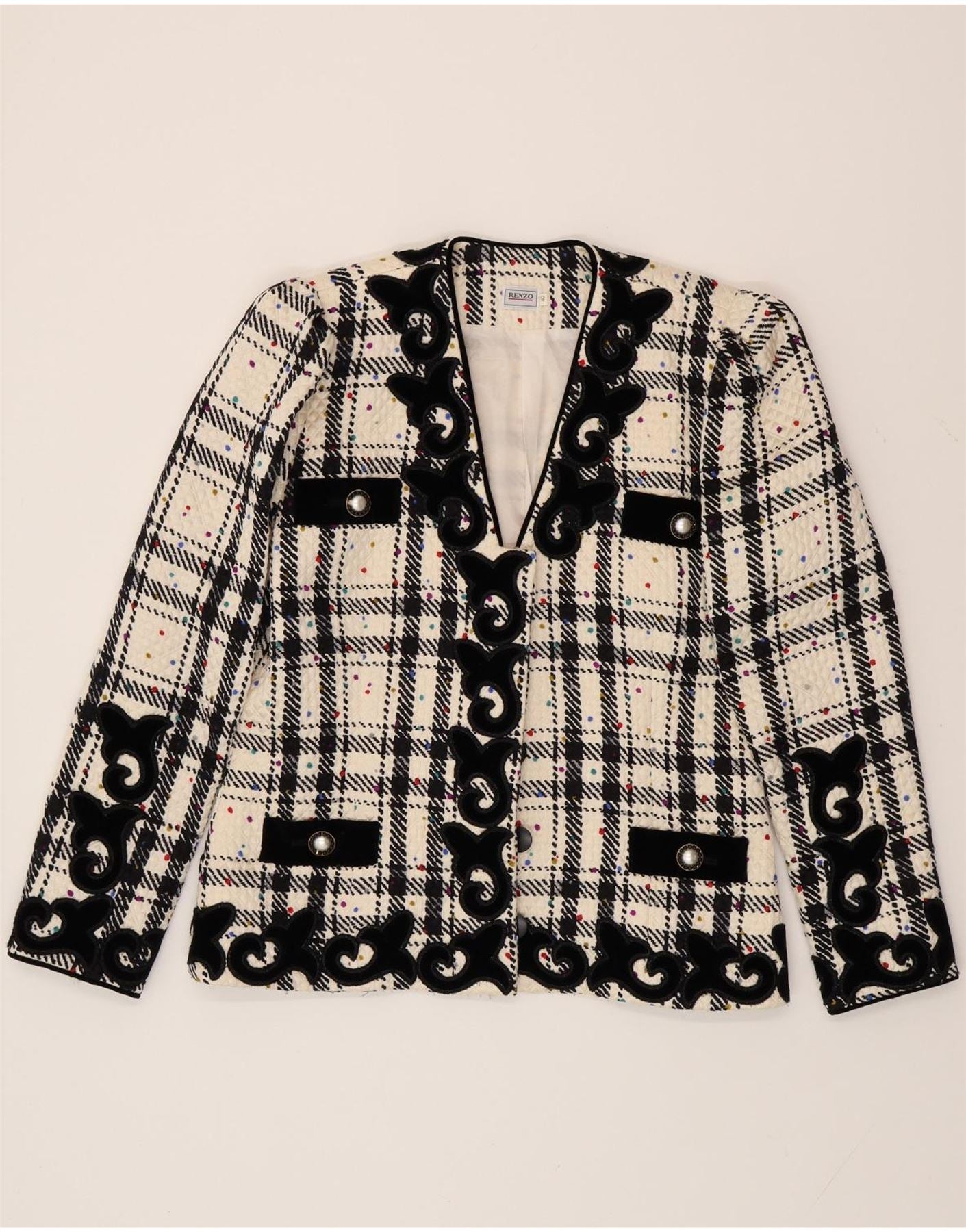 RENZO Γυναικείο μπουφάν μπλέιζερ μεγάλου μεγέθους IT 40 Small Off White Check