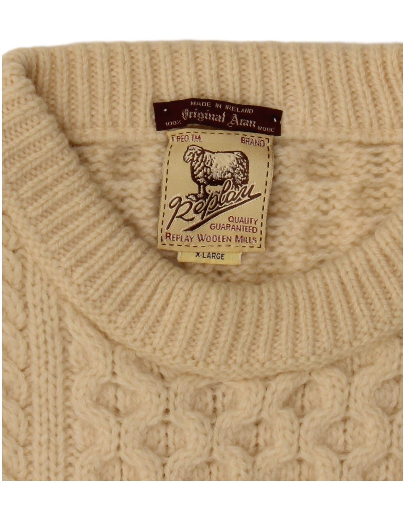 REPLAY Ανδρικό πουλόβερ με λαιμόκοψη XL Off White Wool