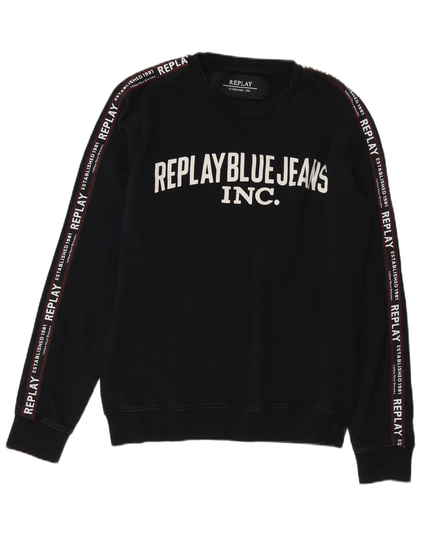 REPLAY Ανδρικό γραφικό φούτερ Jumper Μεσαίο μαύρο βαμβακερό