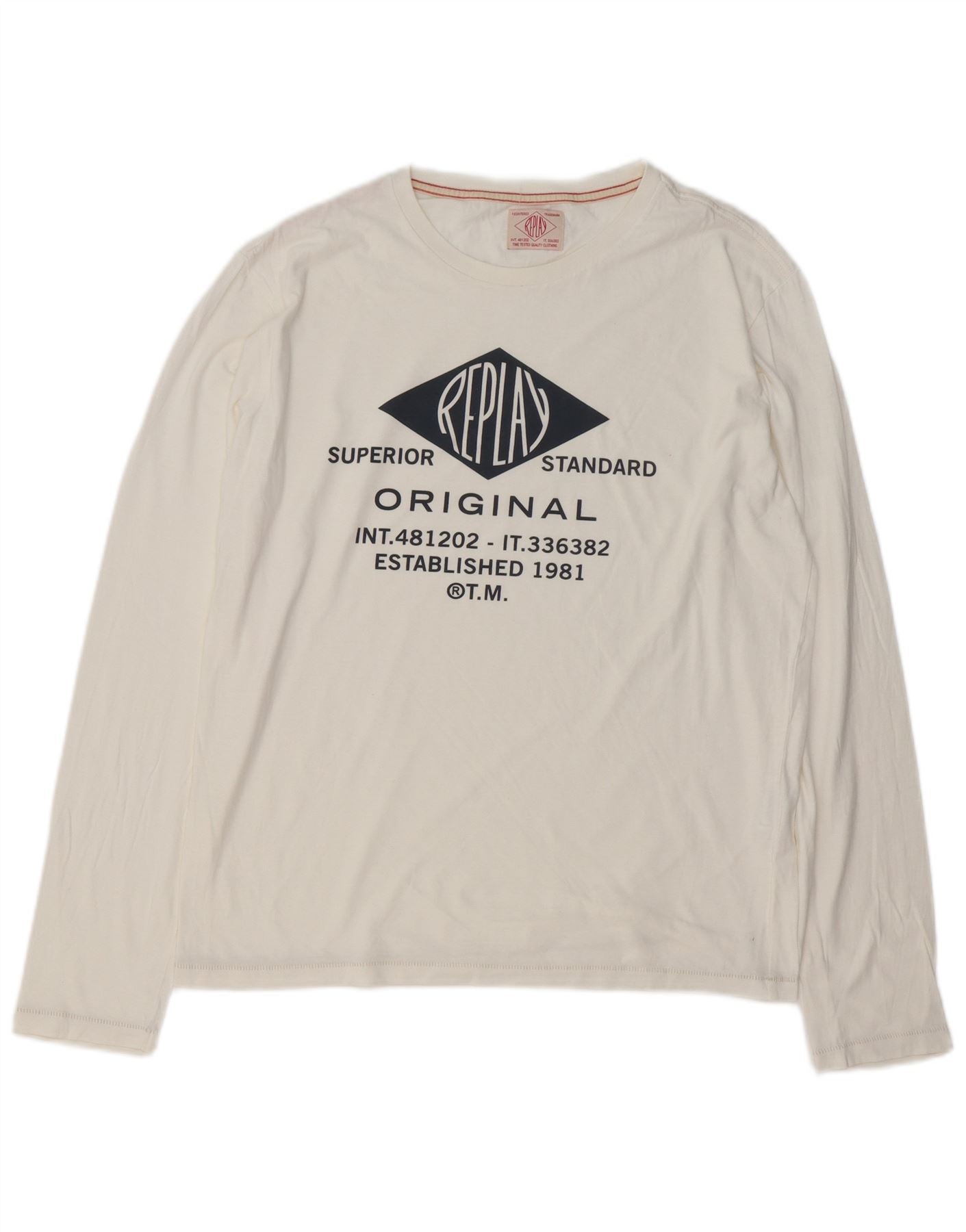 REPLAY Ανδρικό γραφικό τοπ μακρυμάνικο μεγάλο λευκό βαμβακερό