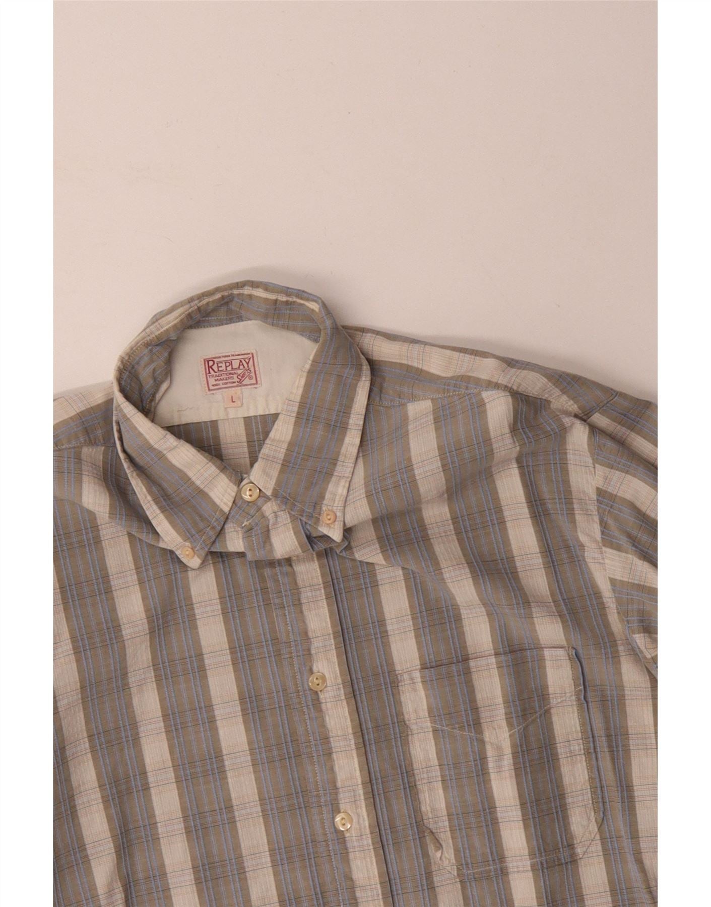 REPLAY Ανδρικό πουκάμισο μεγάλο γκρι βαμβακερό καρέ
