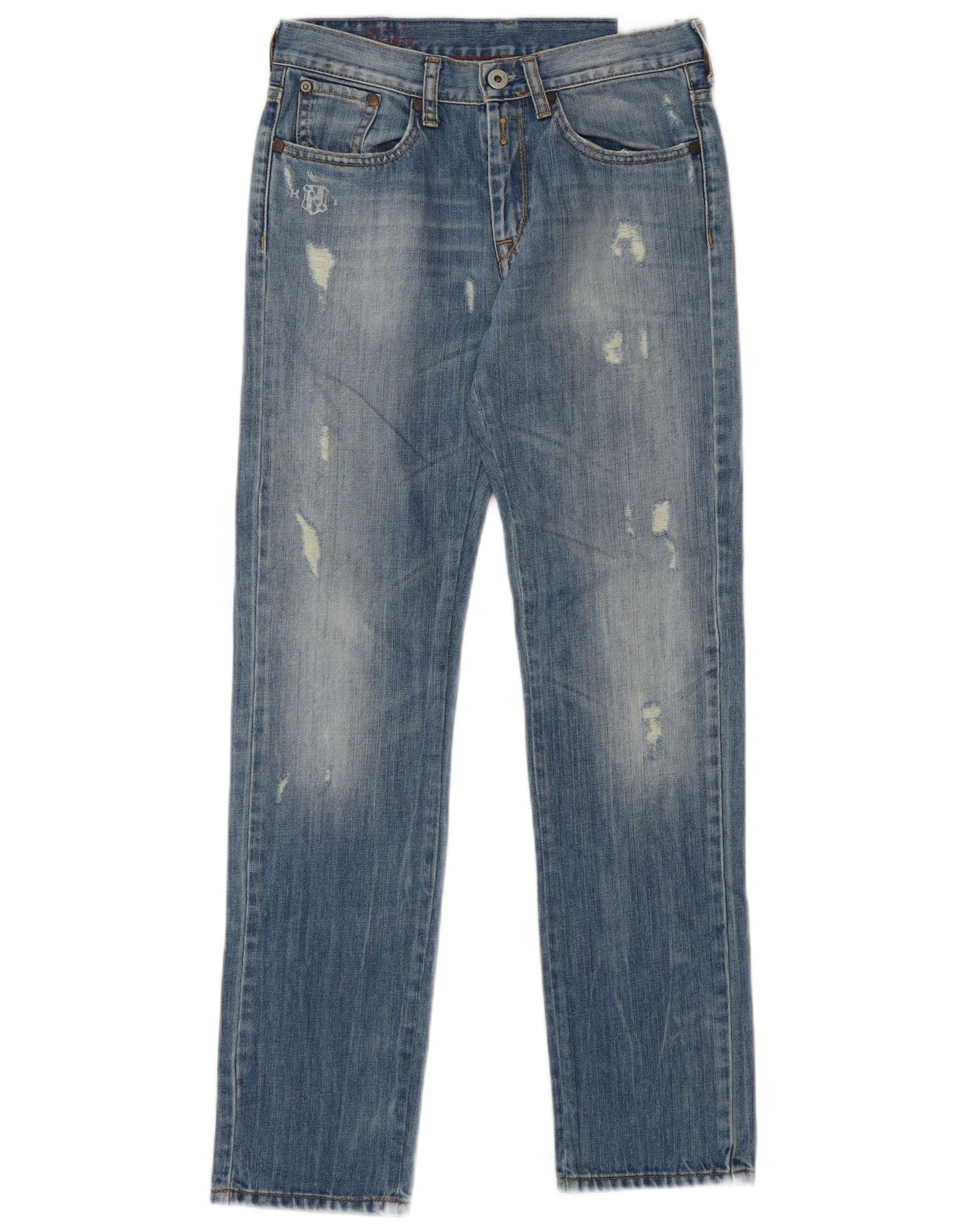 Replay Womens Distressed Straight Jeans W28 L29 Blue Cotton