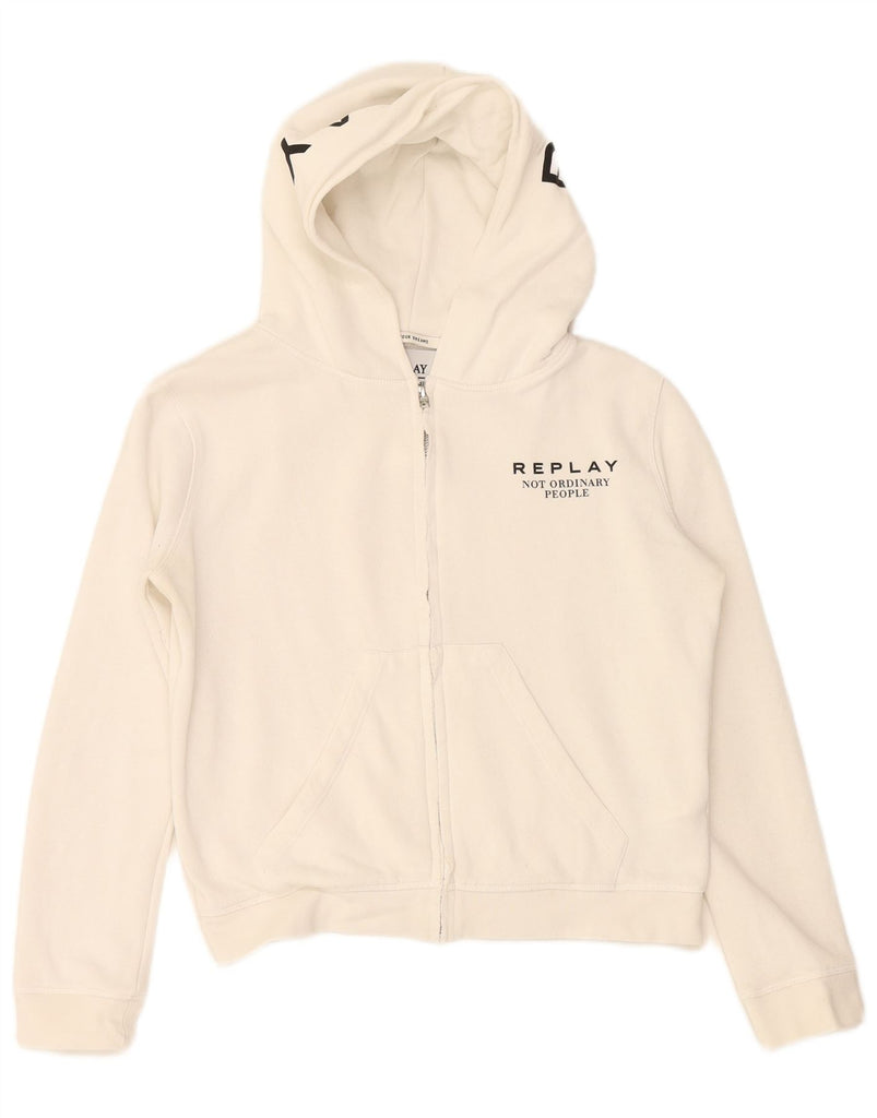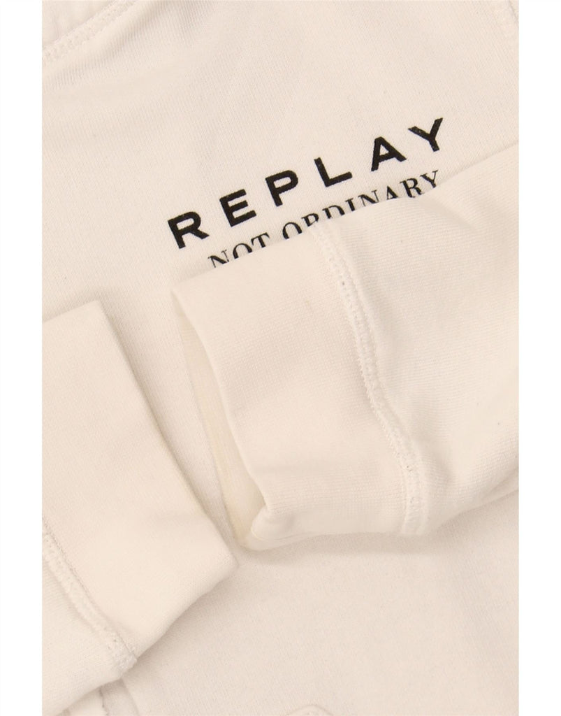 REPLAY Womens Oversized Crop Graphic Zip Hoodie Sweater UK 10 Small White