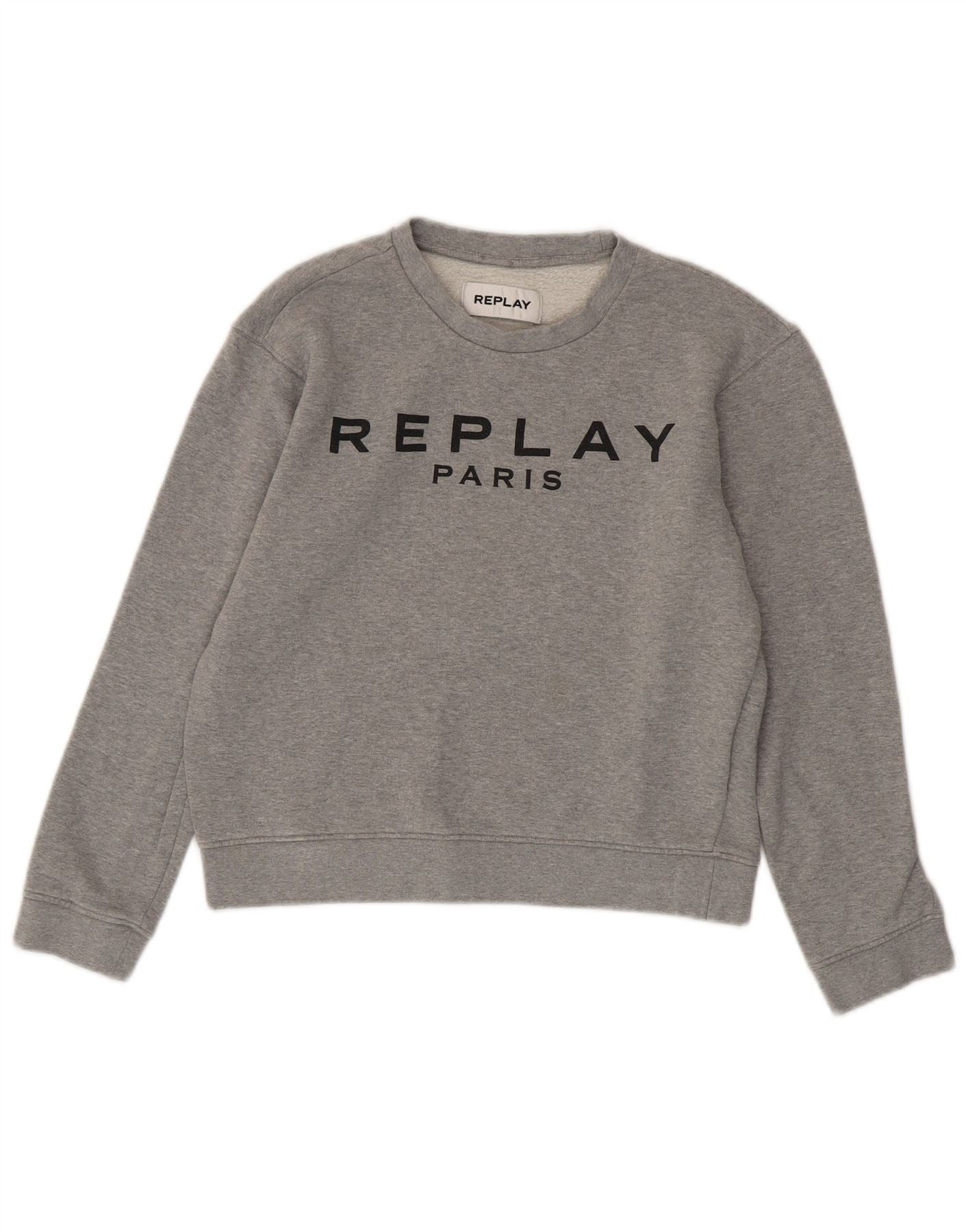 REPLAY Γυναικείο Γραφικό Φούτερ Paris Crop Jumper UK 10 Small Grey Cotton