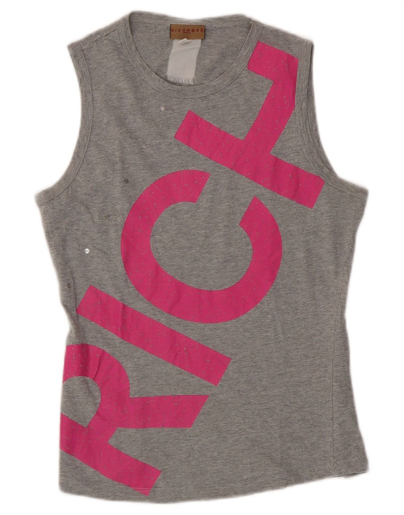 - Περιγραφή AI: Αυτό το γυναικείο γραφικό μπλουζάκι Richmond είναι κατασκευασμένο από απαλό γκρι ζέρσεϊ. Διαθέτει κλασική στρογγυλή λαιμόκοψη και άνετο αμάνικο κόψιμο. Το μπροστινό μέρος παρουσιάζει ένα τολμηρό ροζ RICH γραφικό, ενισχυμένο με διακριτικές πινελιές από στρας για μια πινελιά λάμψης. Η κανονική εφαρμογή του εξασφαλίζει μια χαλαρή και ευέλικτη σιλουέτα. Αυτή η μπλούζα πουλόβερ προσφέρει αβίαστο στυλ και άνεση.