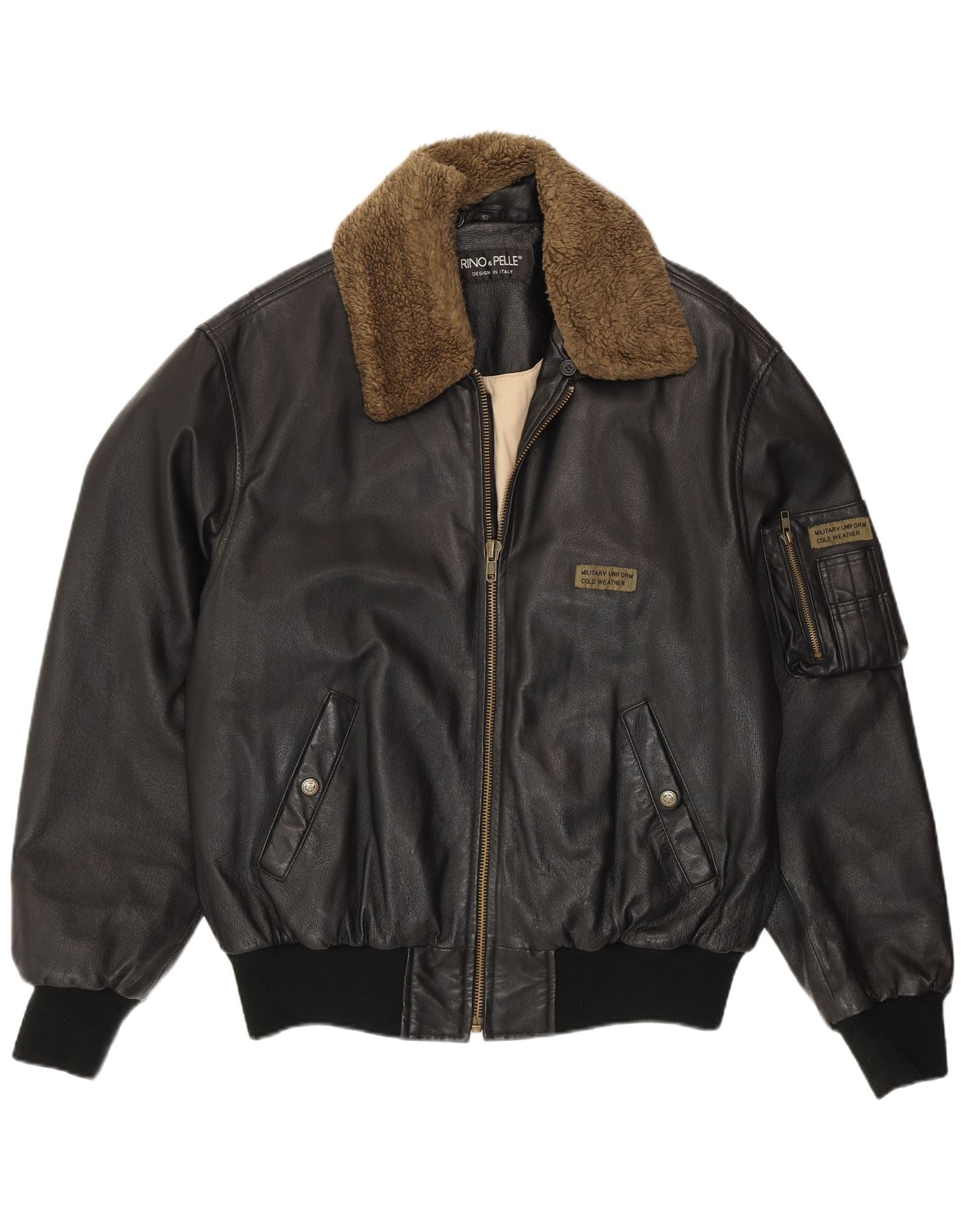 RINO & PELLE Ανδρικό Δερμάτινο Flight Aviator Jacket IT 52 XL Μαύρο Δερμάτινο