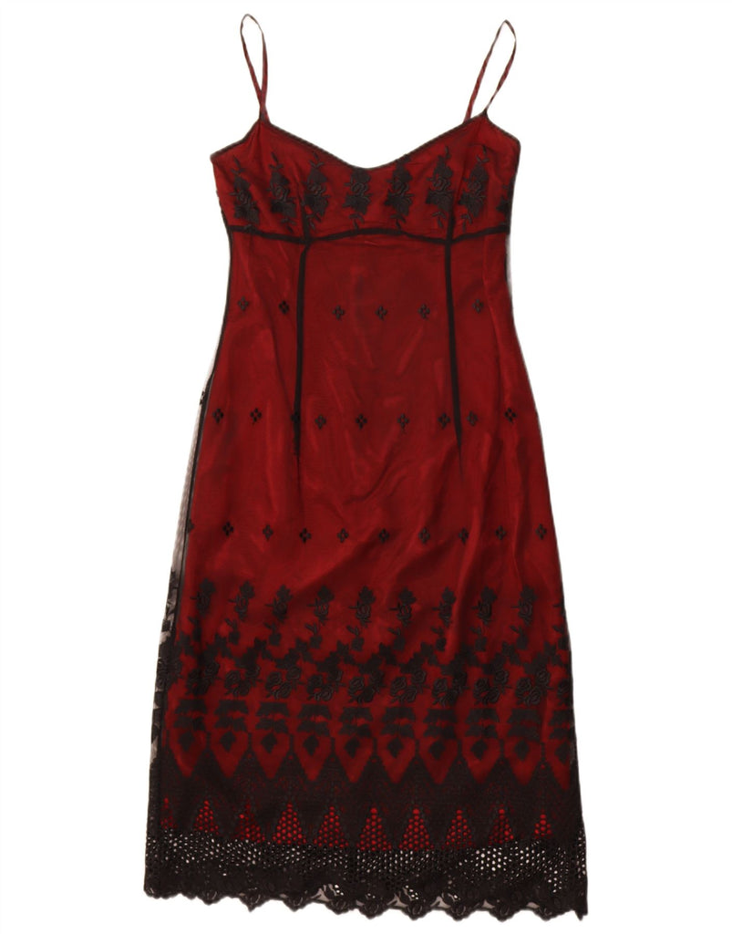 RIVER ISLAND Womens Slip Dress UK 12 Medium Burgundy Floral Rayon