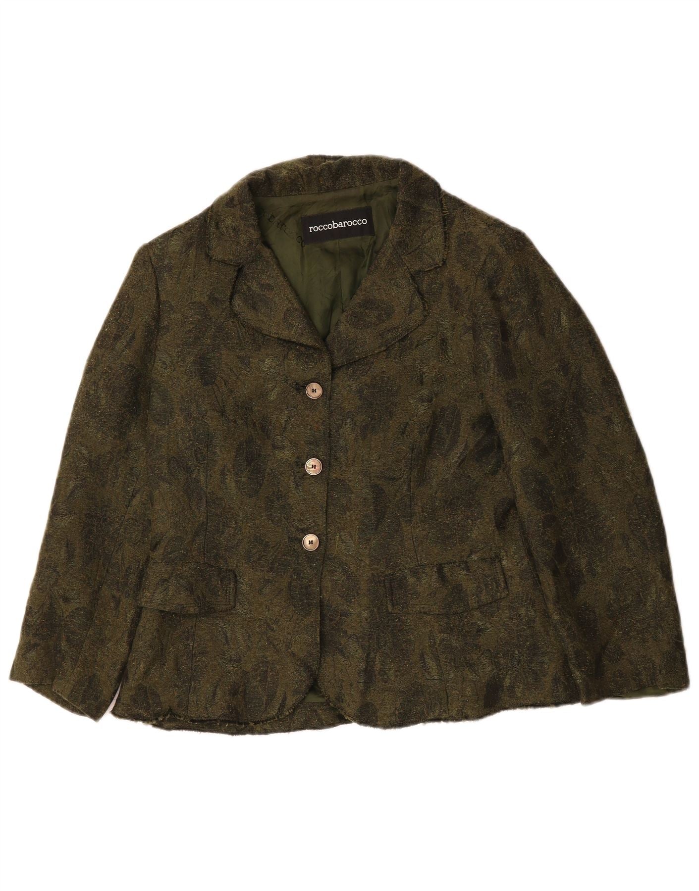 ROCCOBAROCCO Womens 3 Button Blazer Jacket US 12 Large Khaki Floral