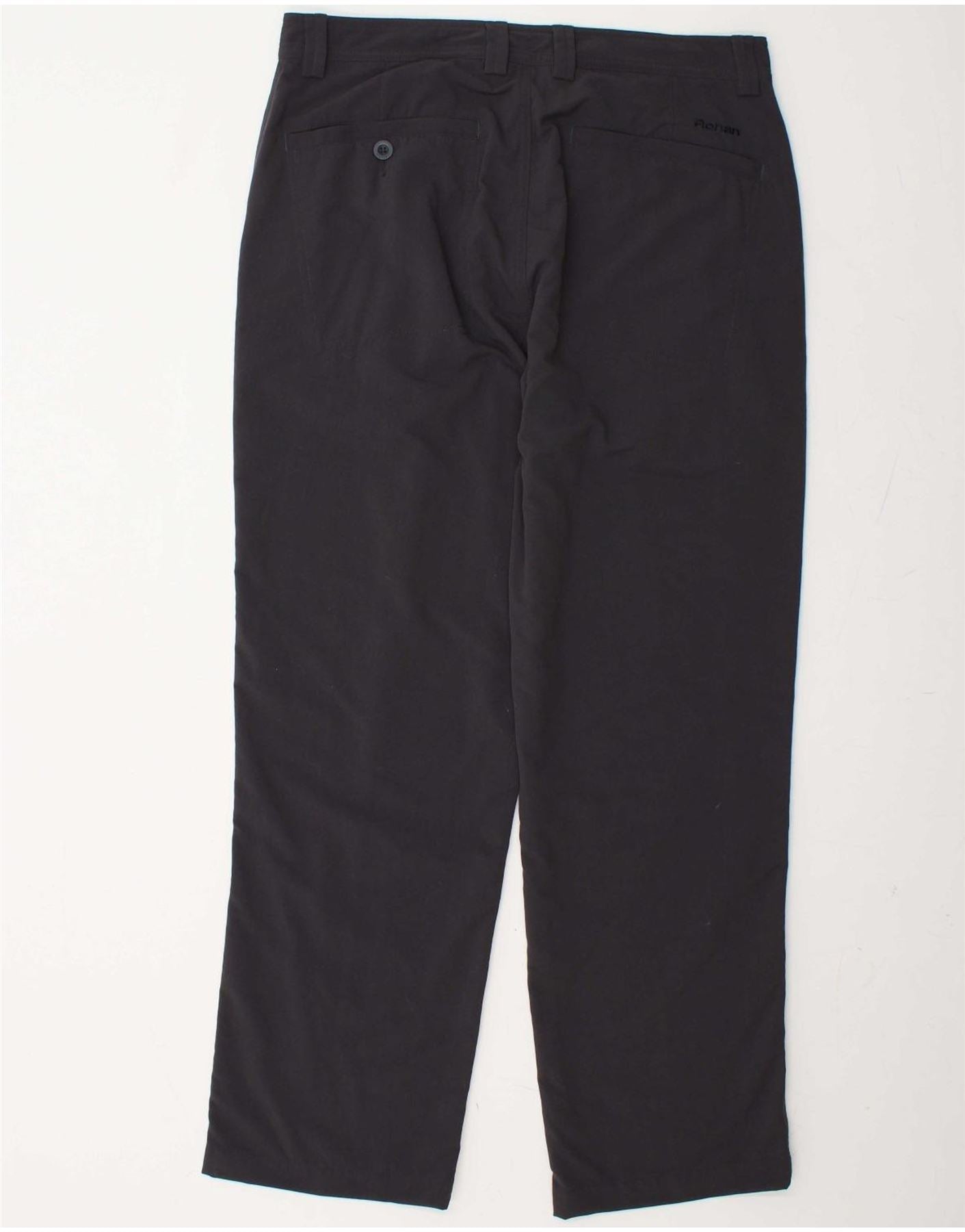 - AI Description: These Rohan men's casual trousers are crafted from a lightweight, woven black fabric, offering comfortable stretch. They feature a regular fit, ensuring ease of movement for everyday wear. A classic button and zip closure provides a secure fastening. Multiple pockets enhance practicality. The plain design makes them versatile for various activities, including sports.