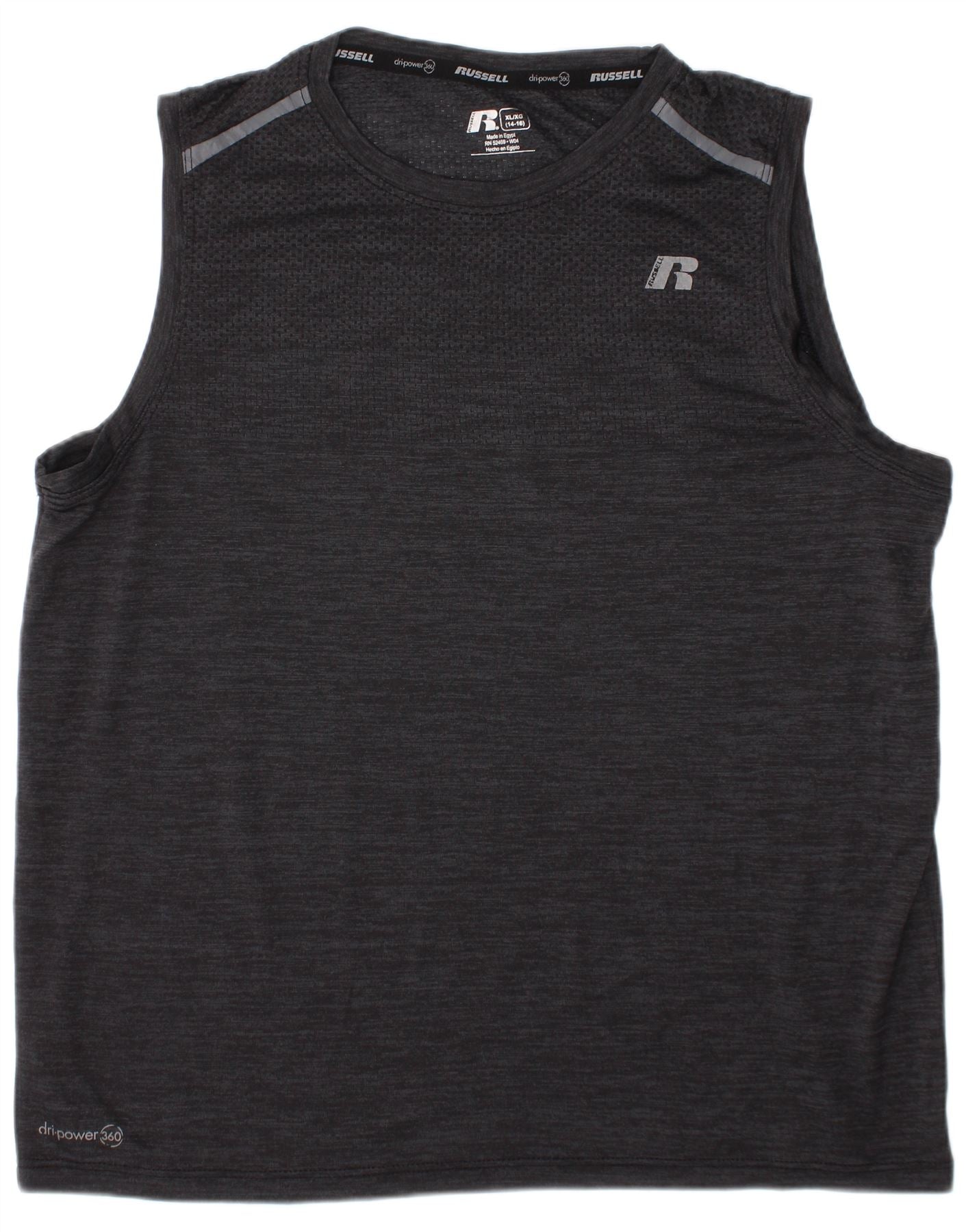 RUSSELL ATHLETIC Boys Dri-Power Vest Top 14-15 Years XL Grey Flecked